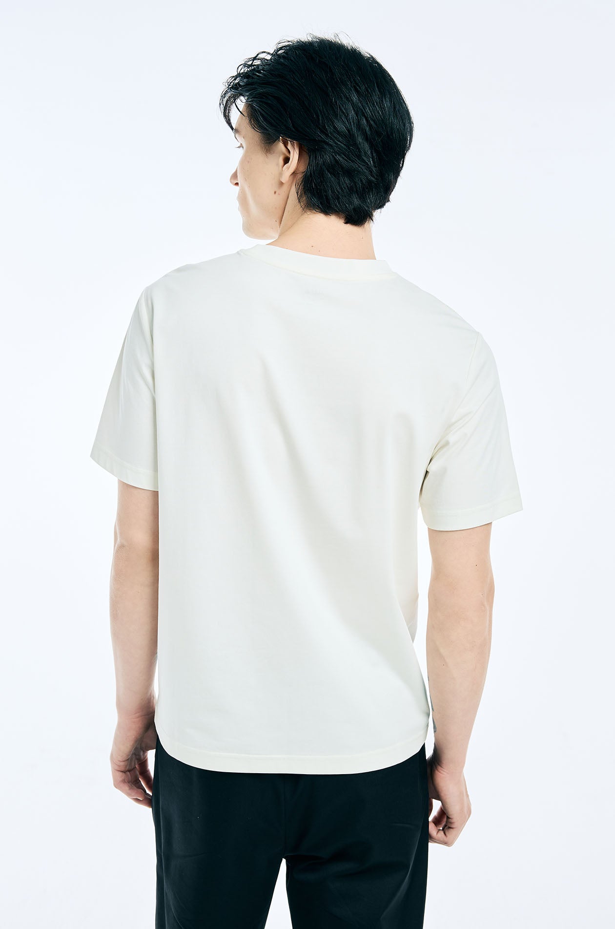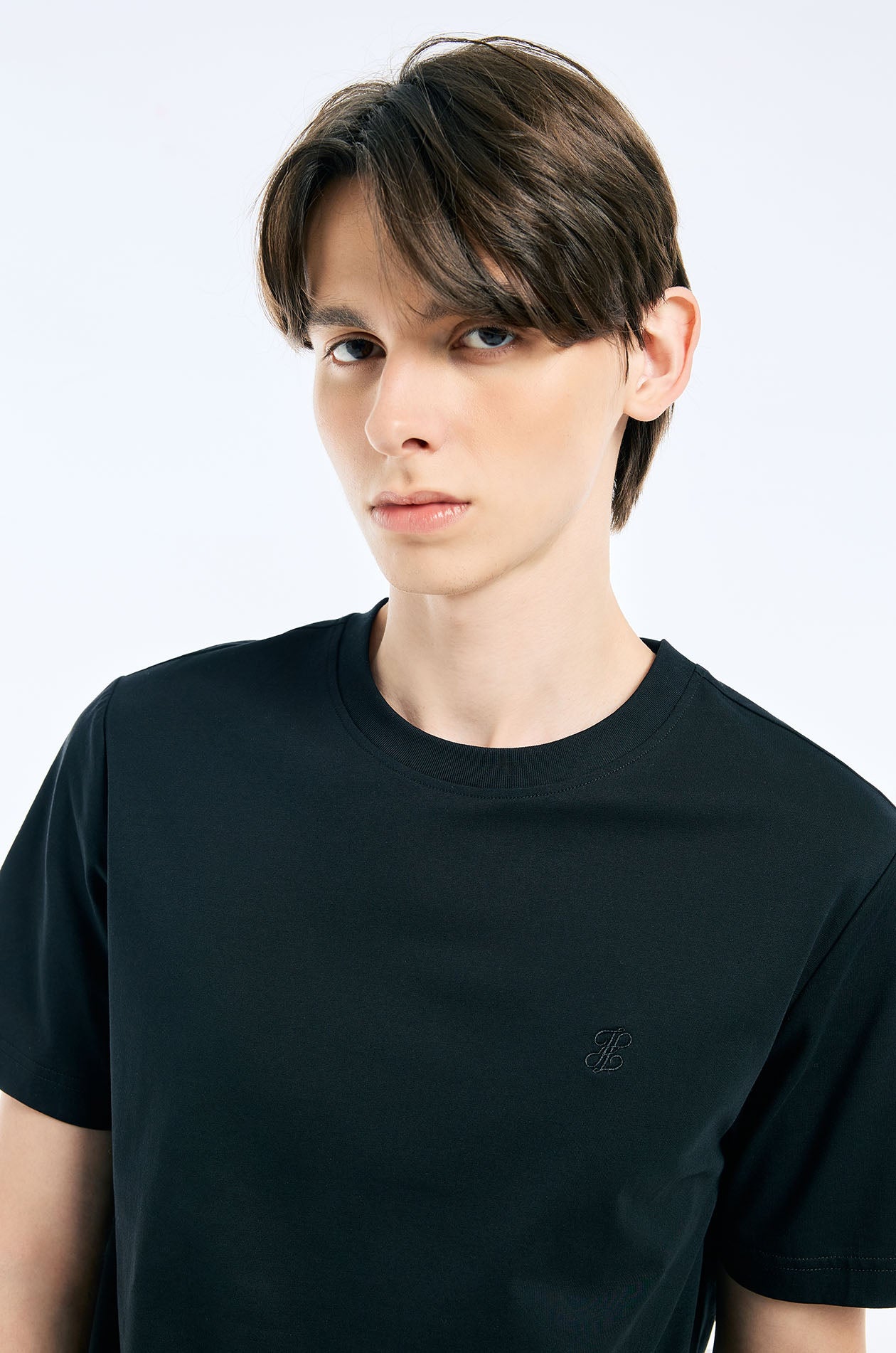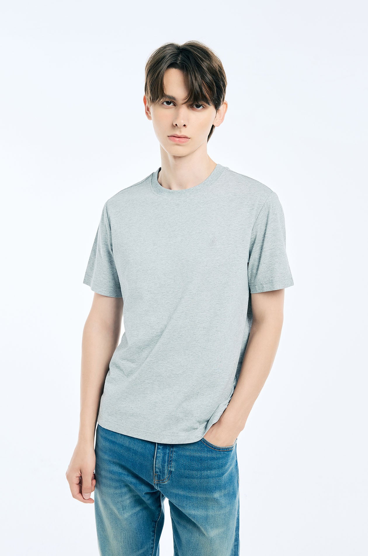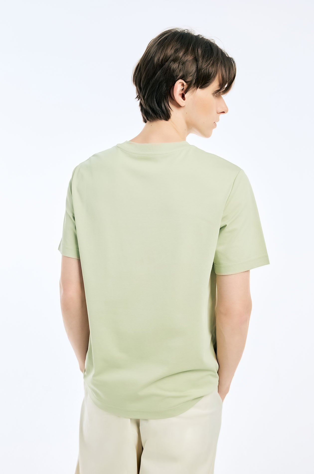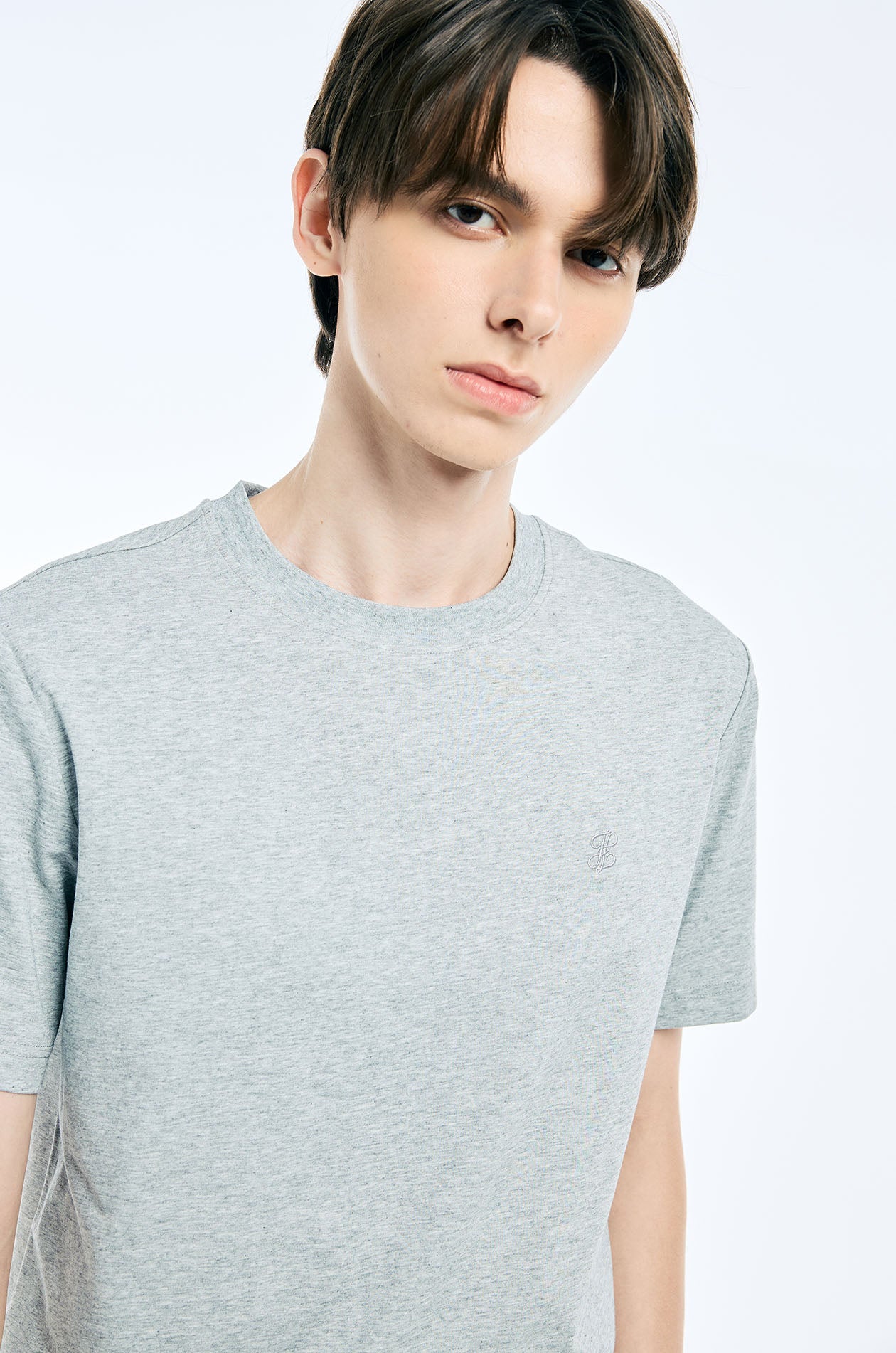 Short-sleeved T-shirt in jersey. Regular fit with round neckline and embroidered anagram logo at the chest. Available in cream, black, top-dyed grey, brown, and green.