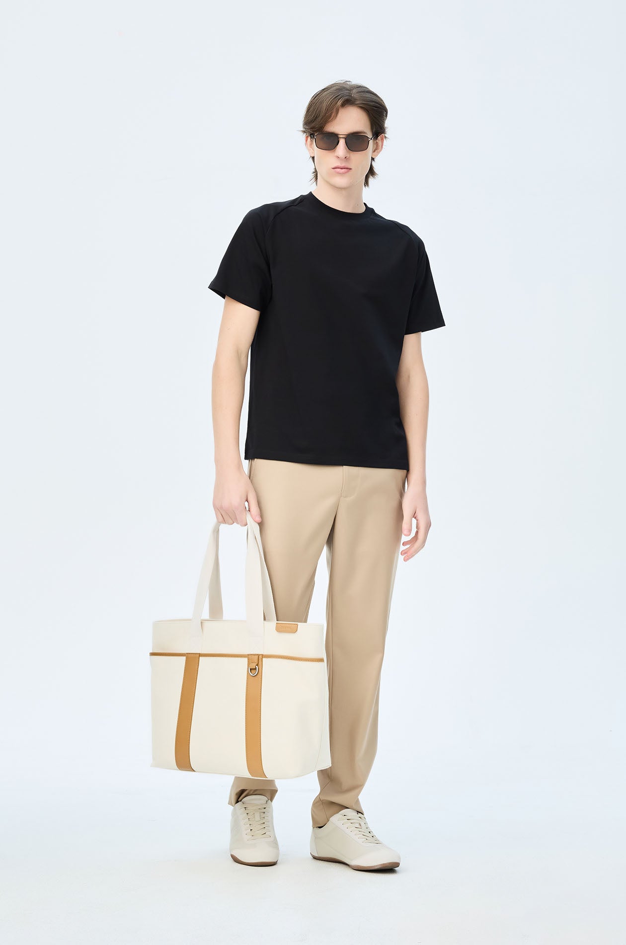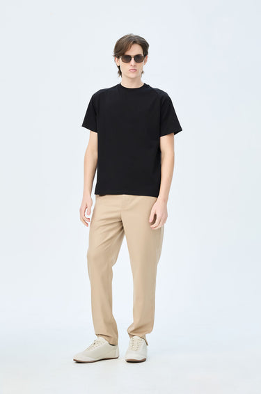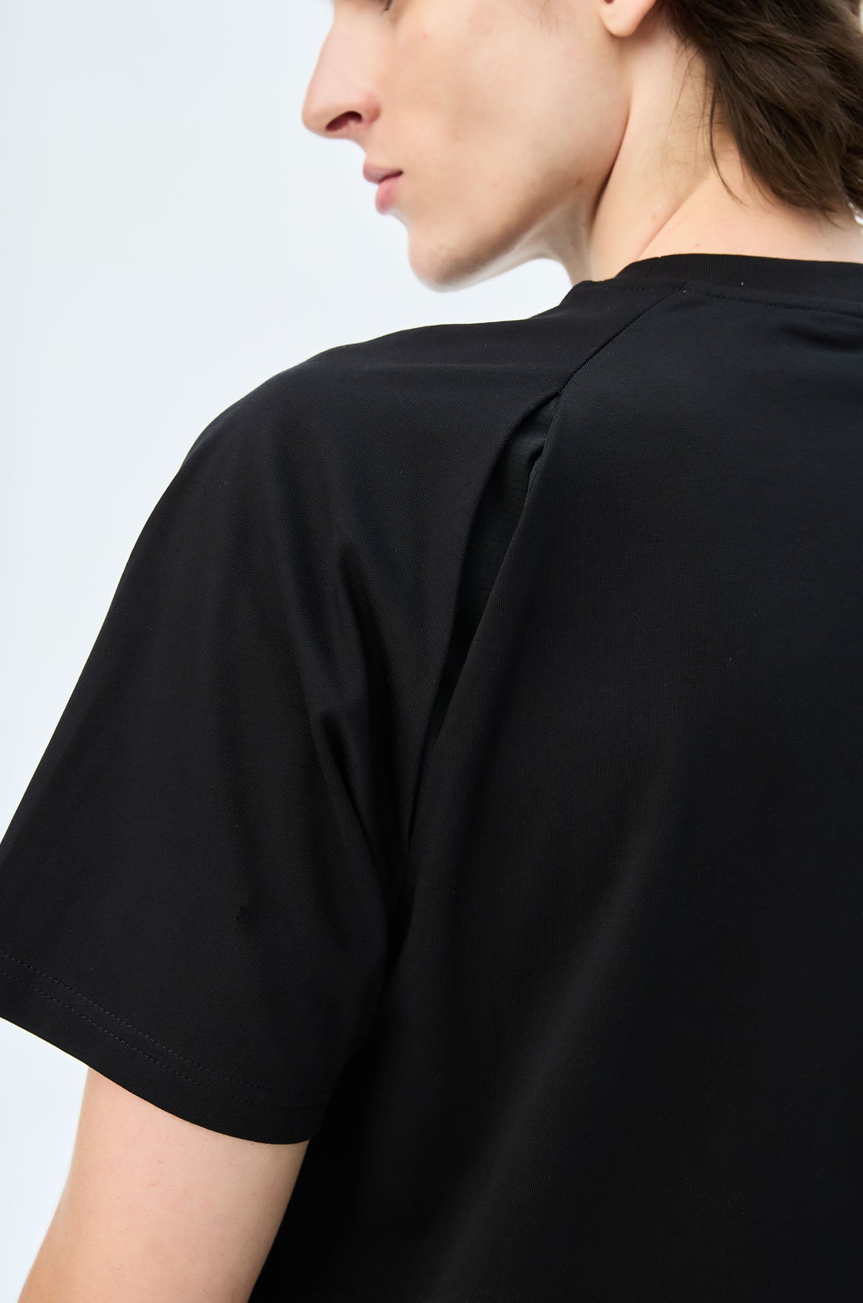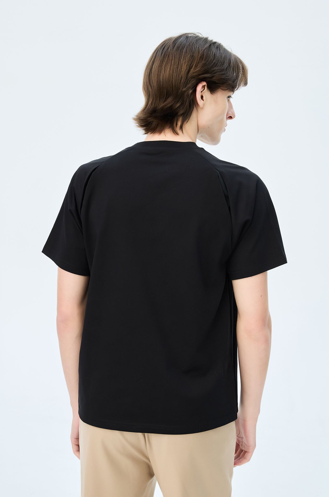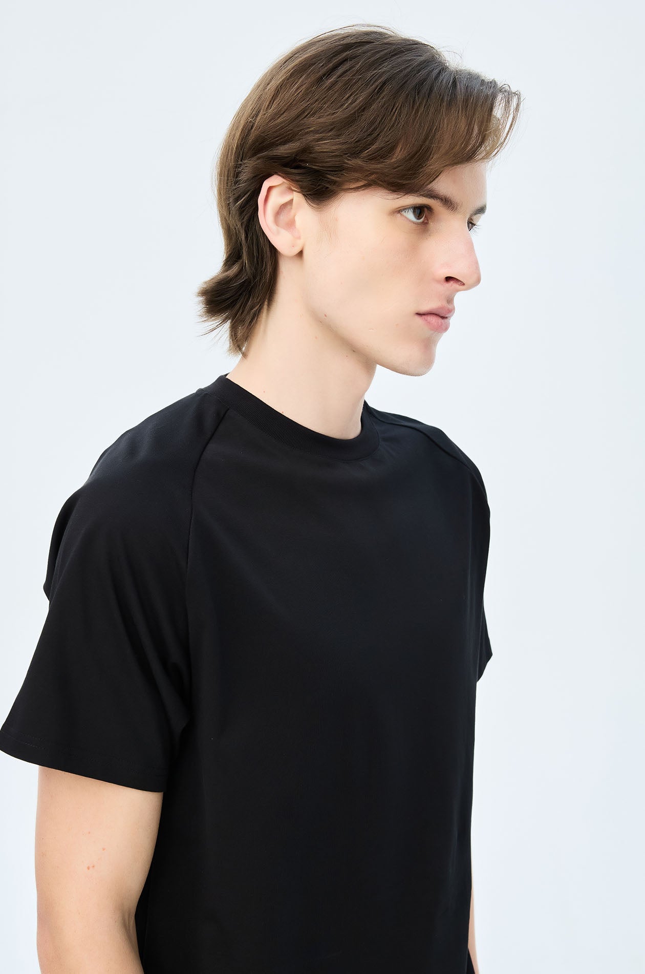 Short-sleeved T-shirt in cotton jersey. Relaxed fit with round neckline and mesh trim at the back shoulders for enhanced ventilation. Available in black.