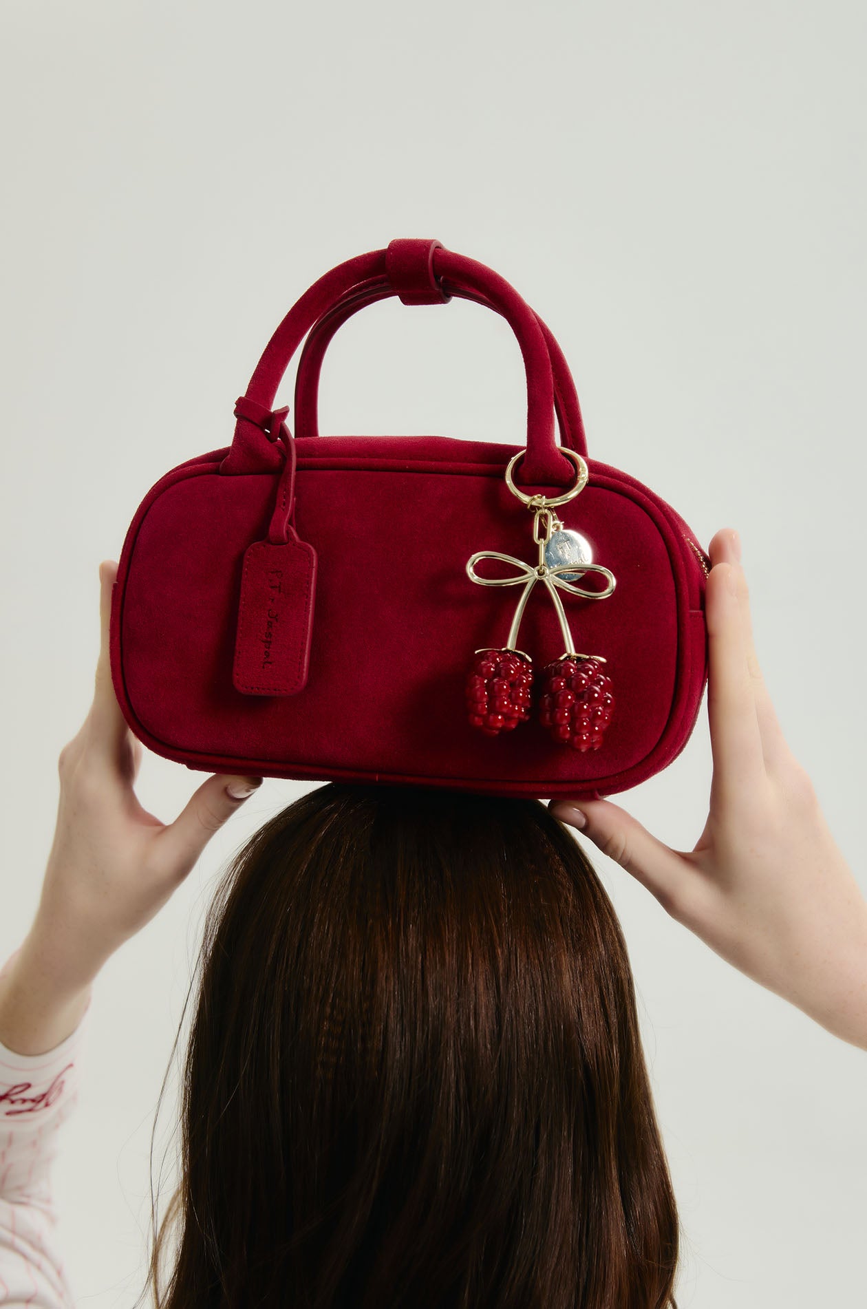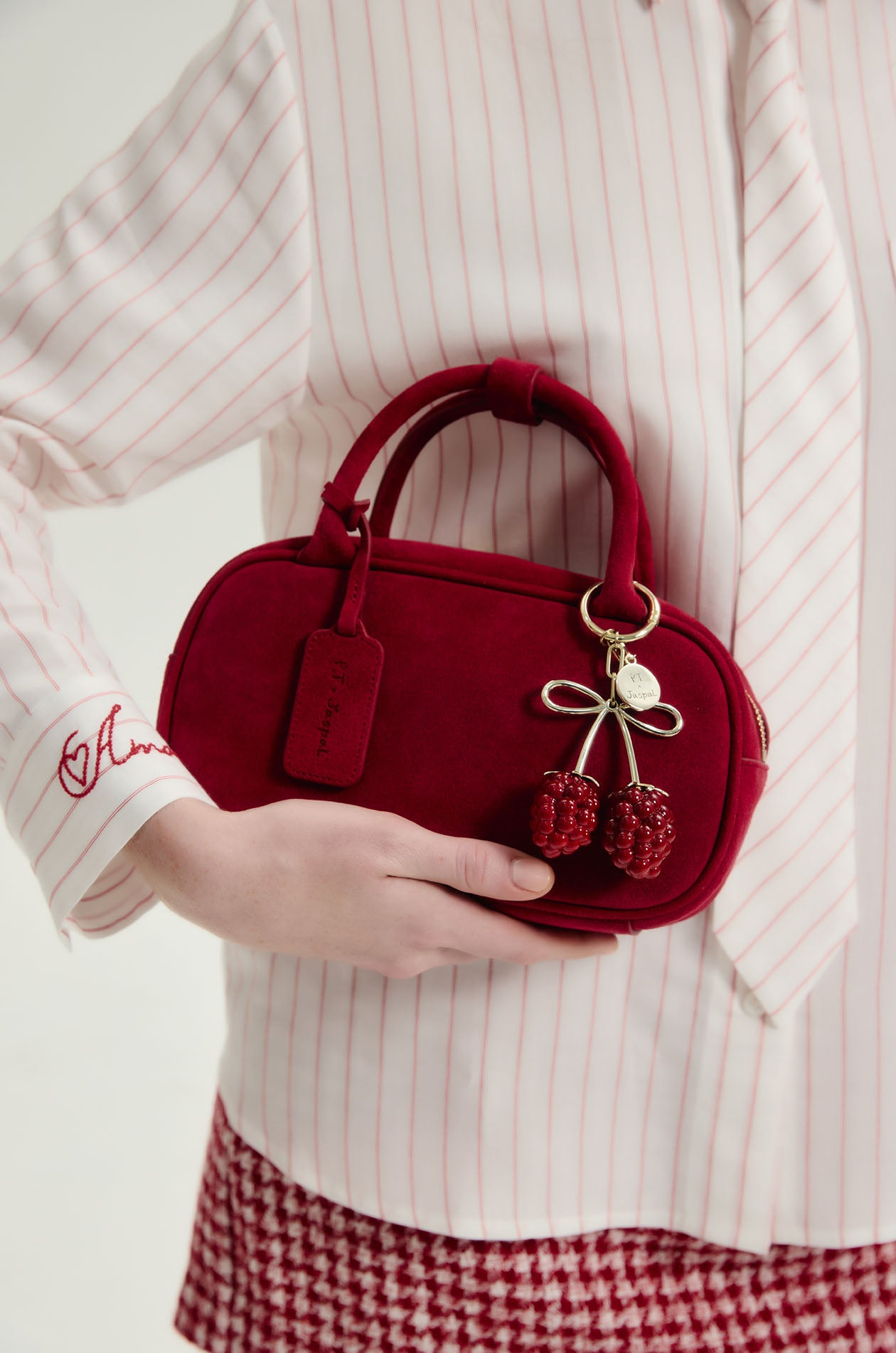 Jaspal The Edit x Proud & Tan | Handbag crafted from cow suede leather, featuring an east‑west design, a rounded rectangular shape, and structured top handles. Available in red.