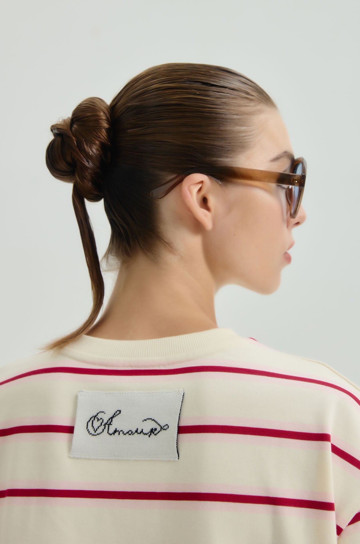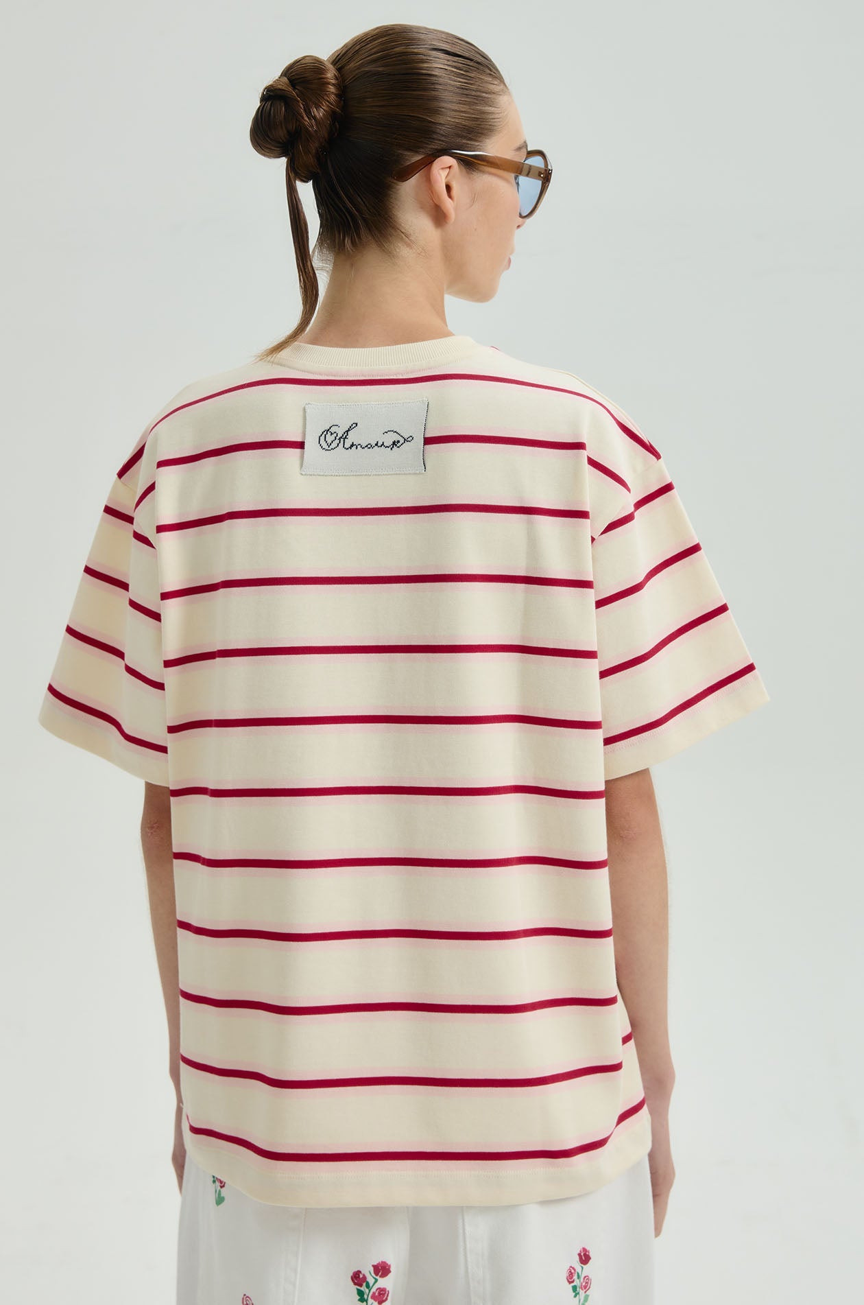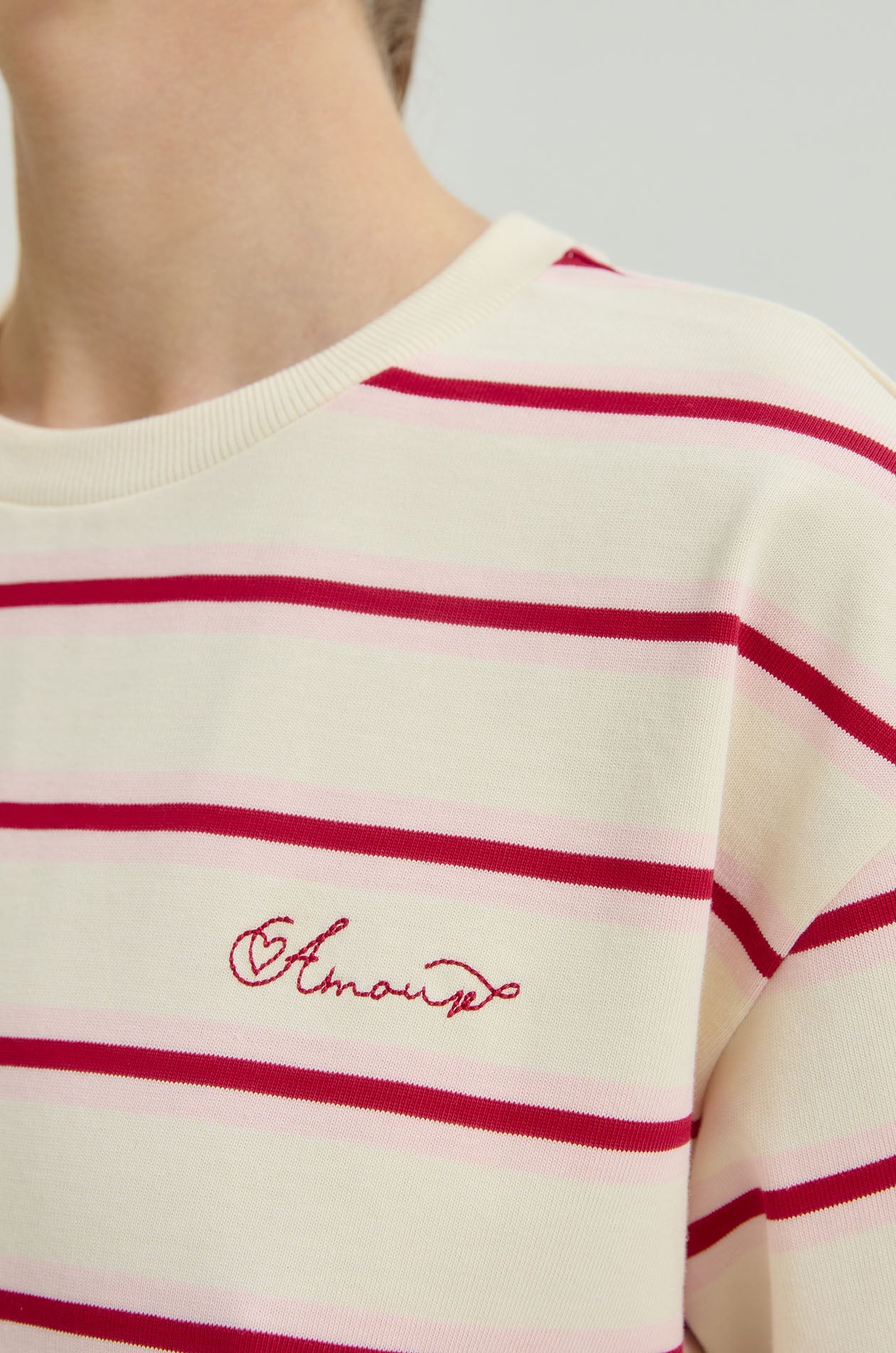 Jaspal The Edit x Proud & Tan | Short-sleeved T-shirt in cotton jersey with a stripe pattern. Oversized fit with a ribbed round neckline and embroidery at the chest. Available in cream.
