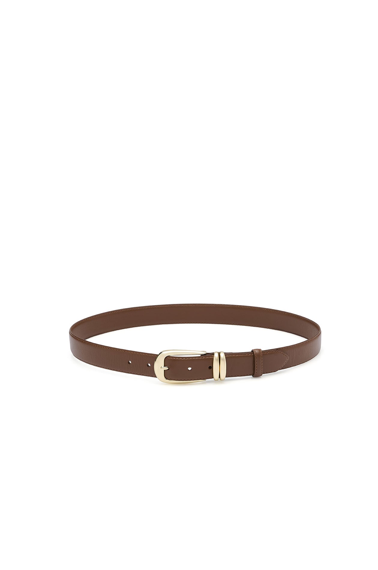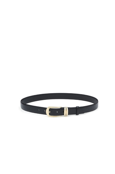 Classic belt crafted from cow leather with metal belt loop. Available in black and brown.