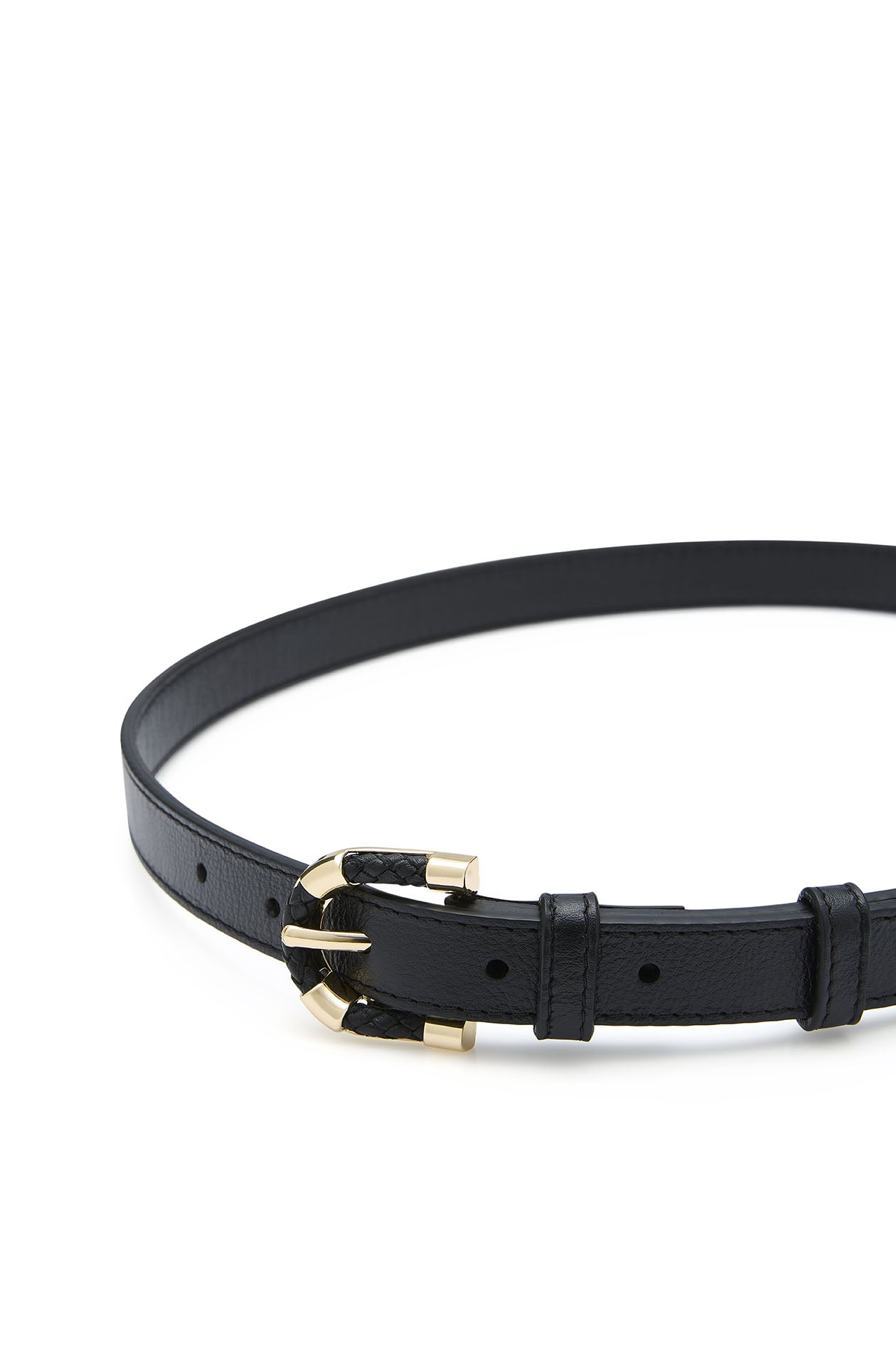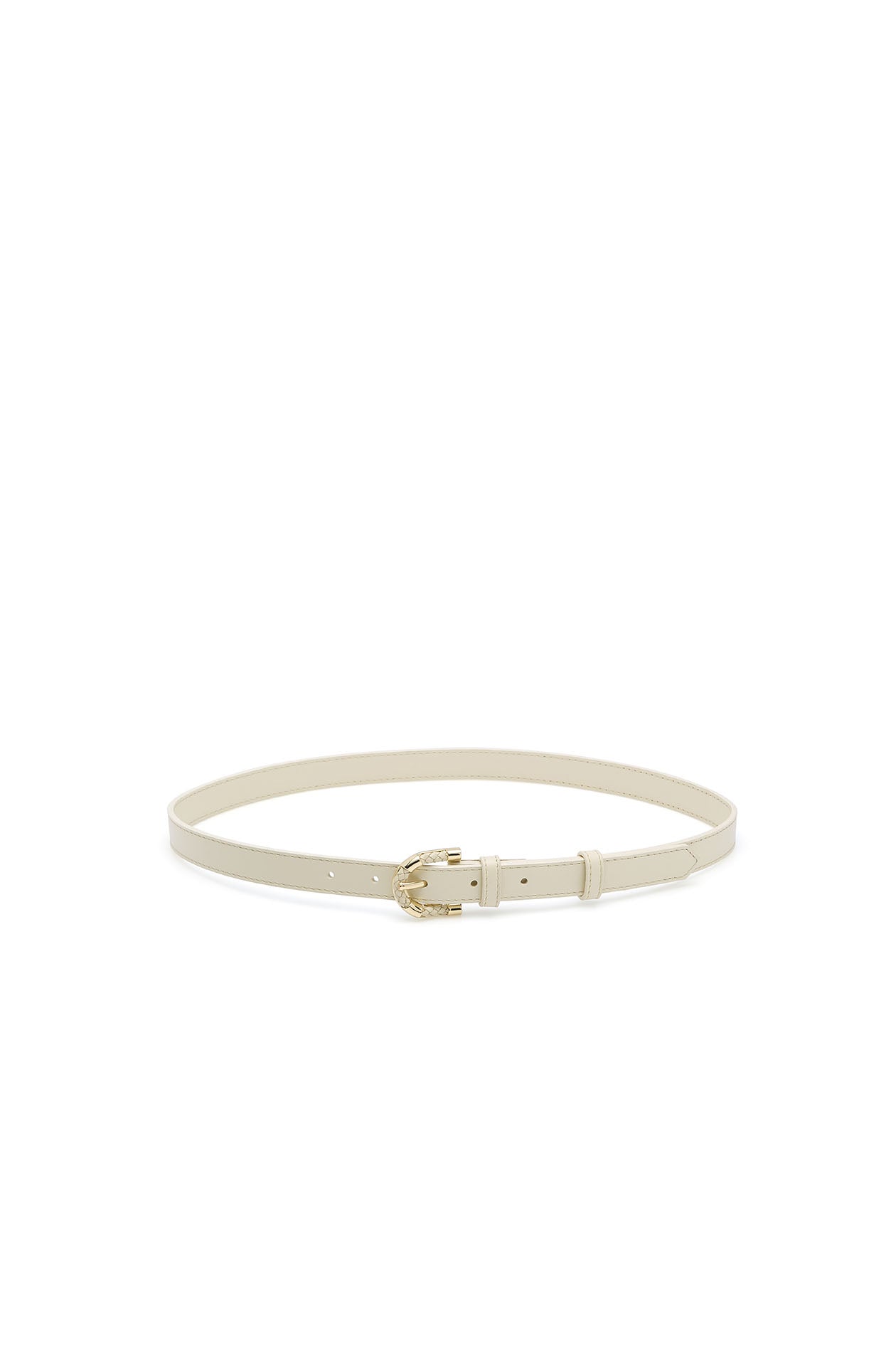 Skinny belt made of cow leather, adding a modern touch to everyday outfits. Available in black and off-white.