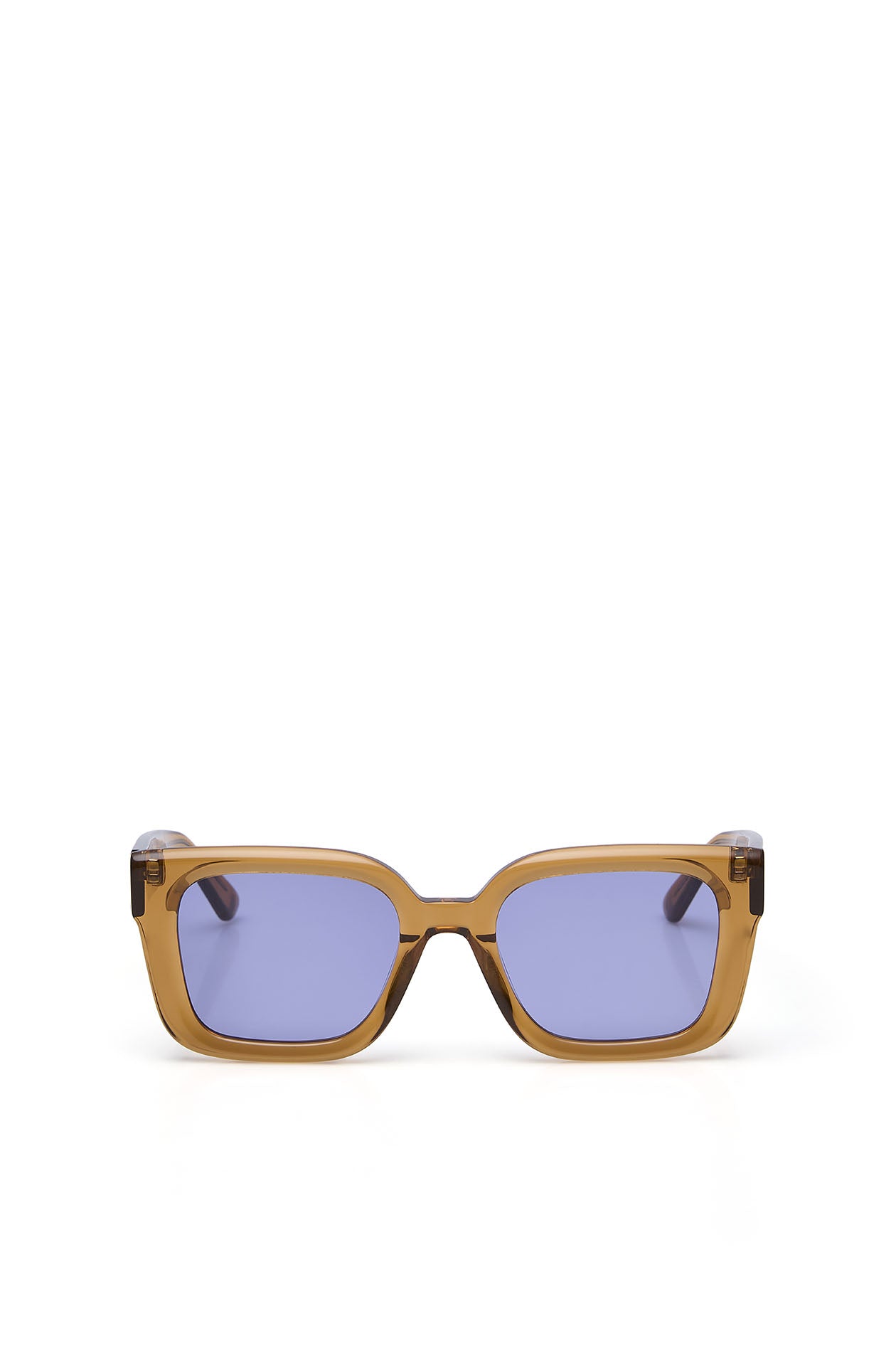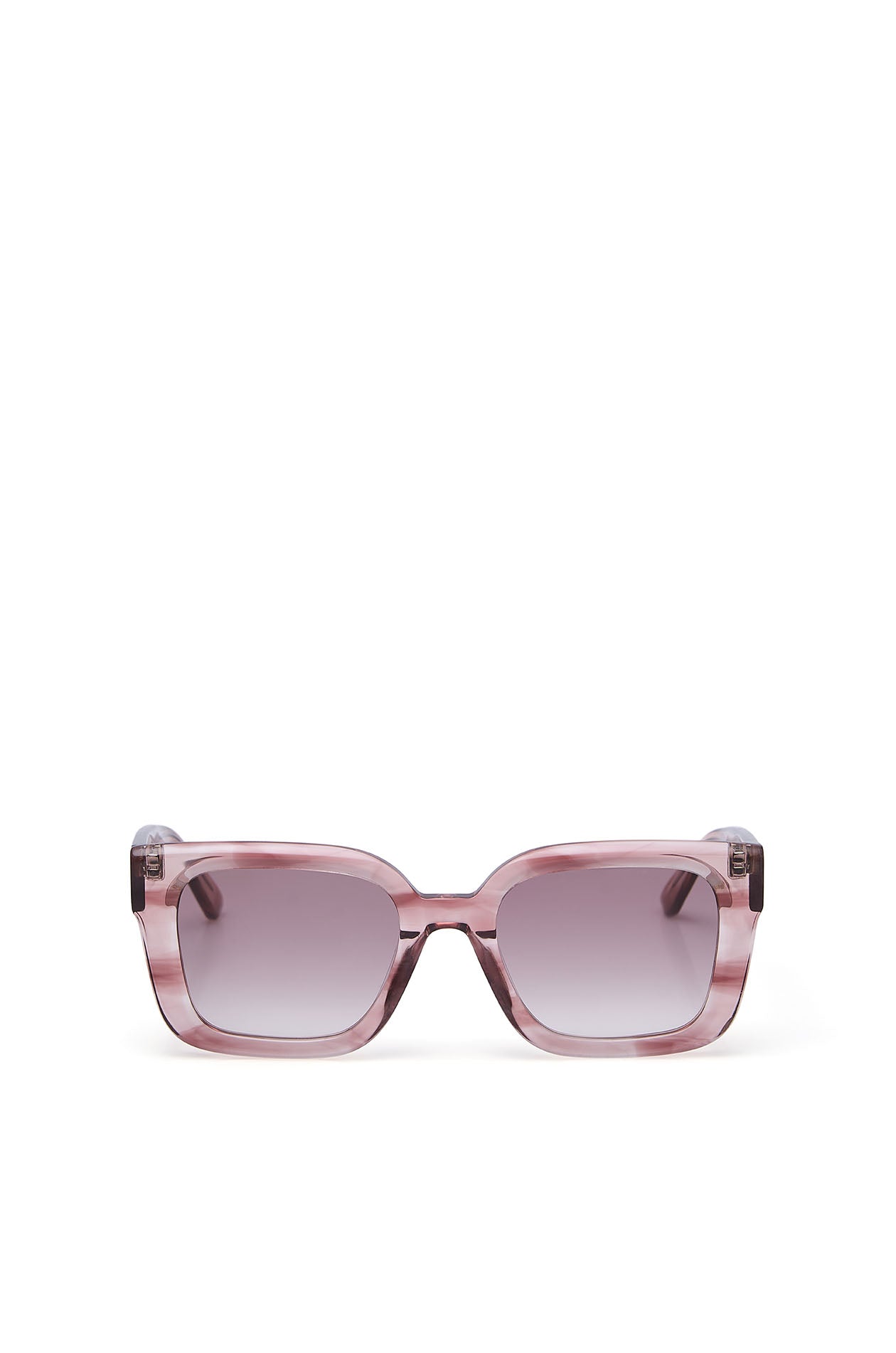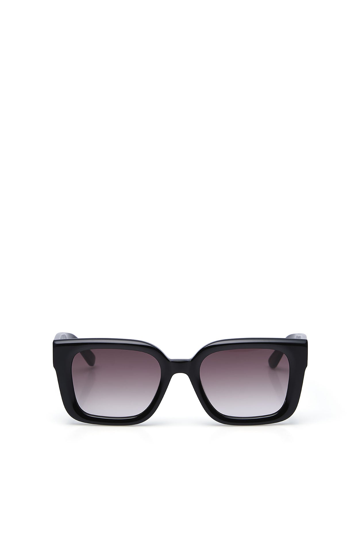 Oversized sunglasses in acetate frame, featuring a square shape and shape edges. Available in black, brown, and pink.