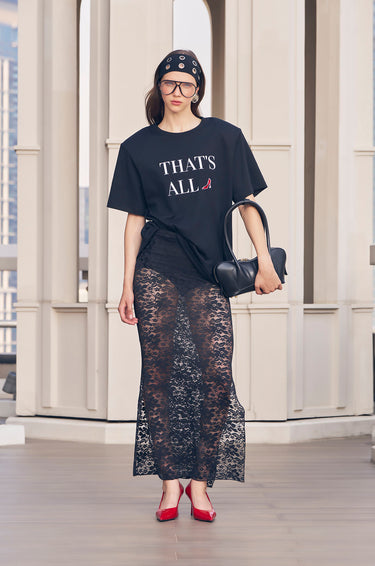 Quote Flocked Oversized T-Shirt in Black