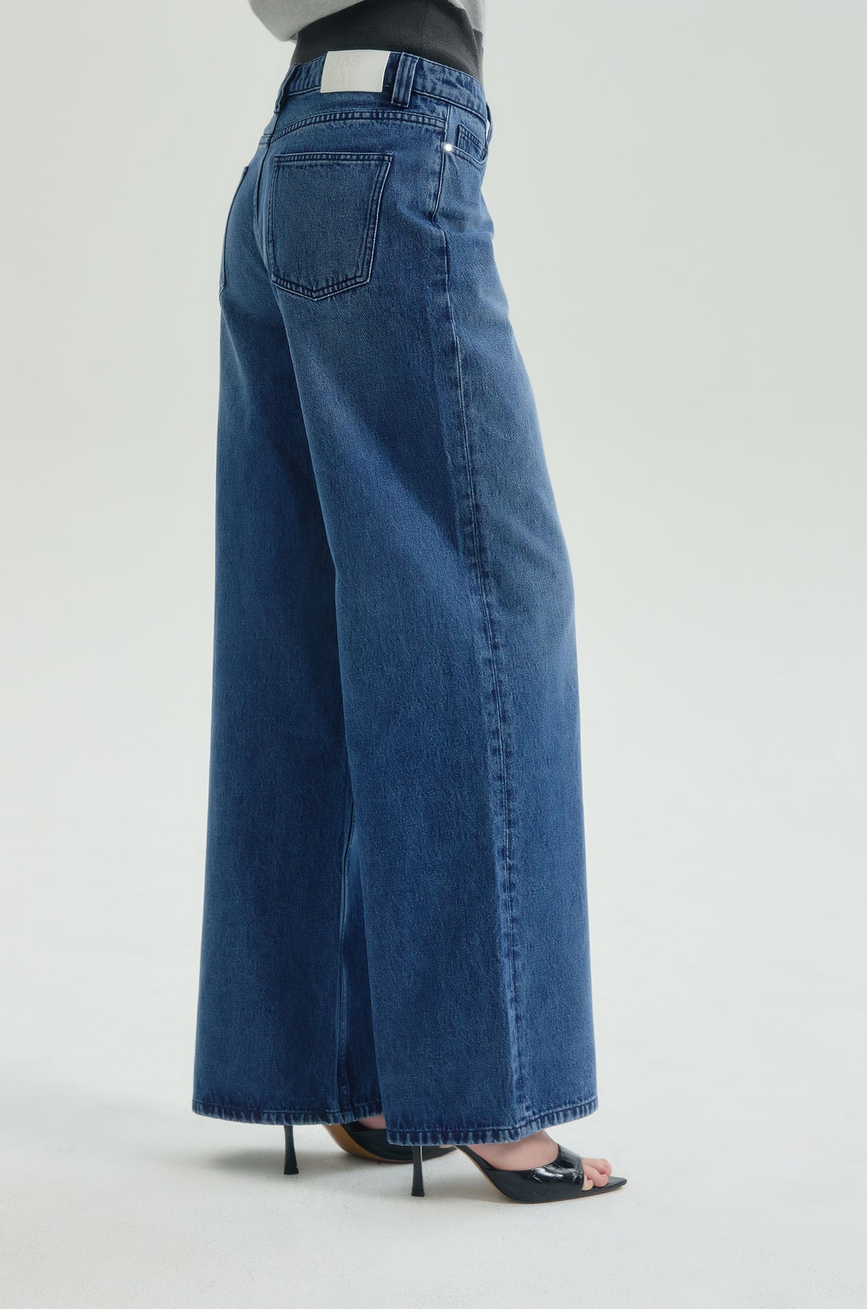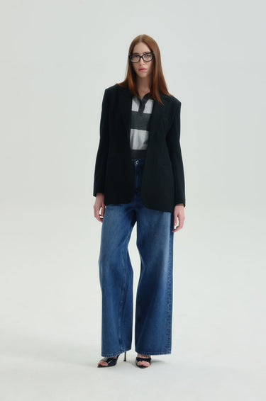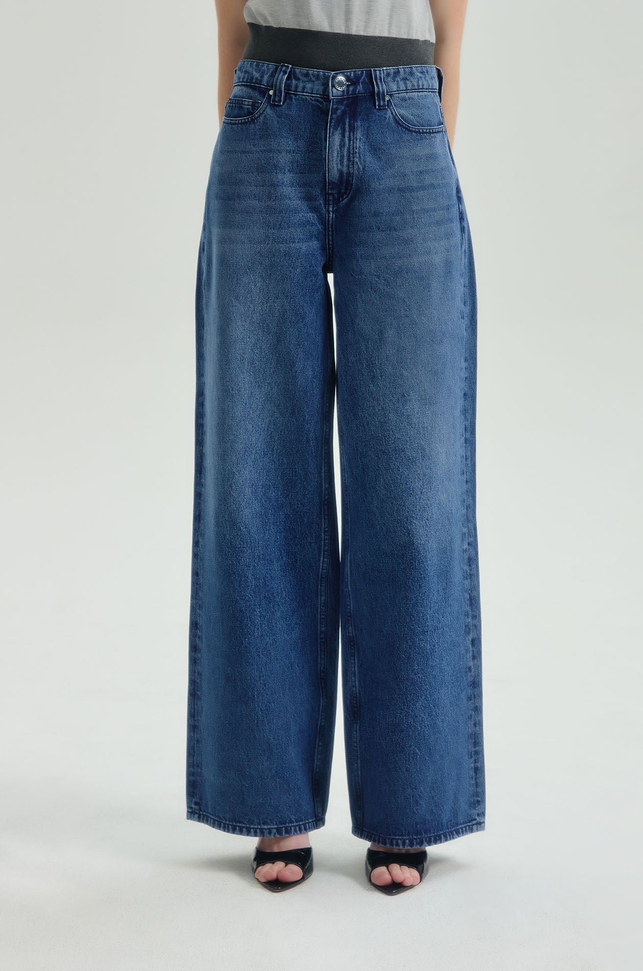 Mid-rise jeans in denim. Baggy fit with classic five-pocket style. Front button and zip closure. Available in dark blue.