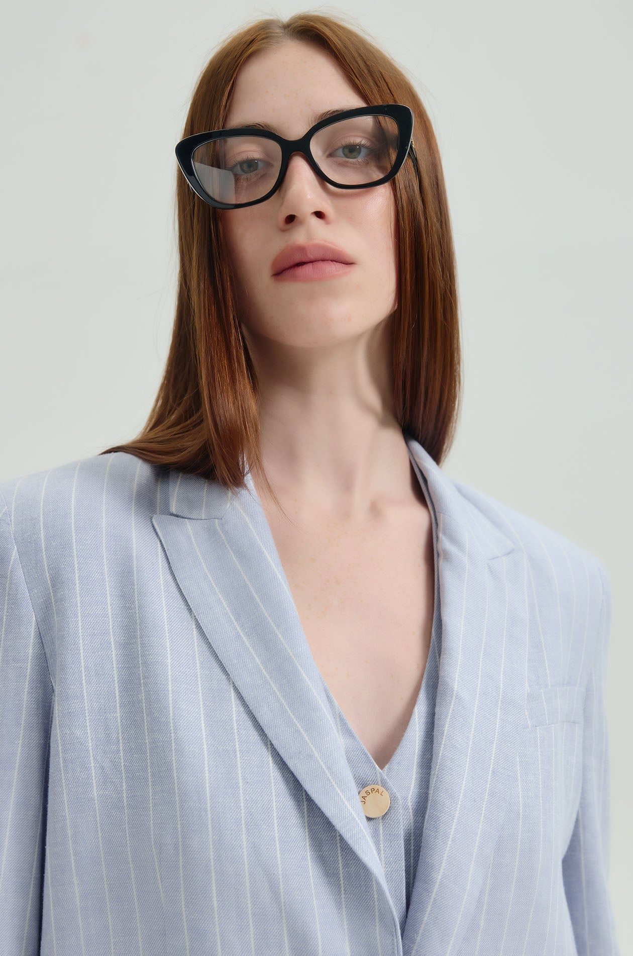 Single-breasted lightweight blazer in fancy twill. Regular fit with peak lapel, padded shoulders, and front pockets. Front button closure. Available in striped blue.