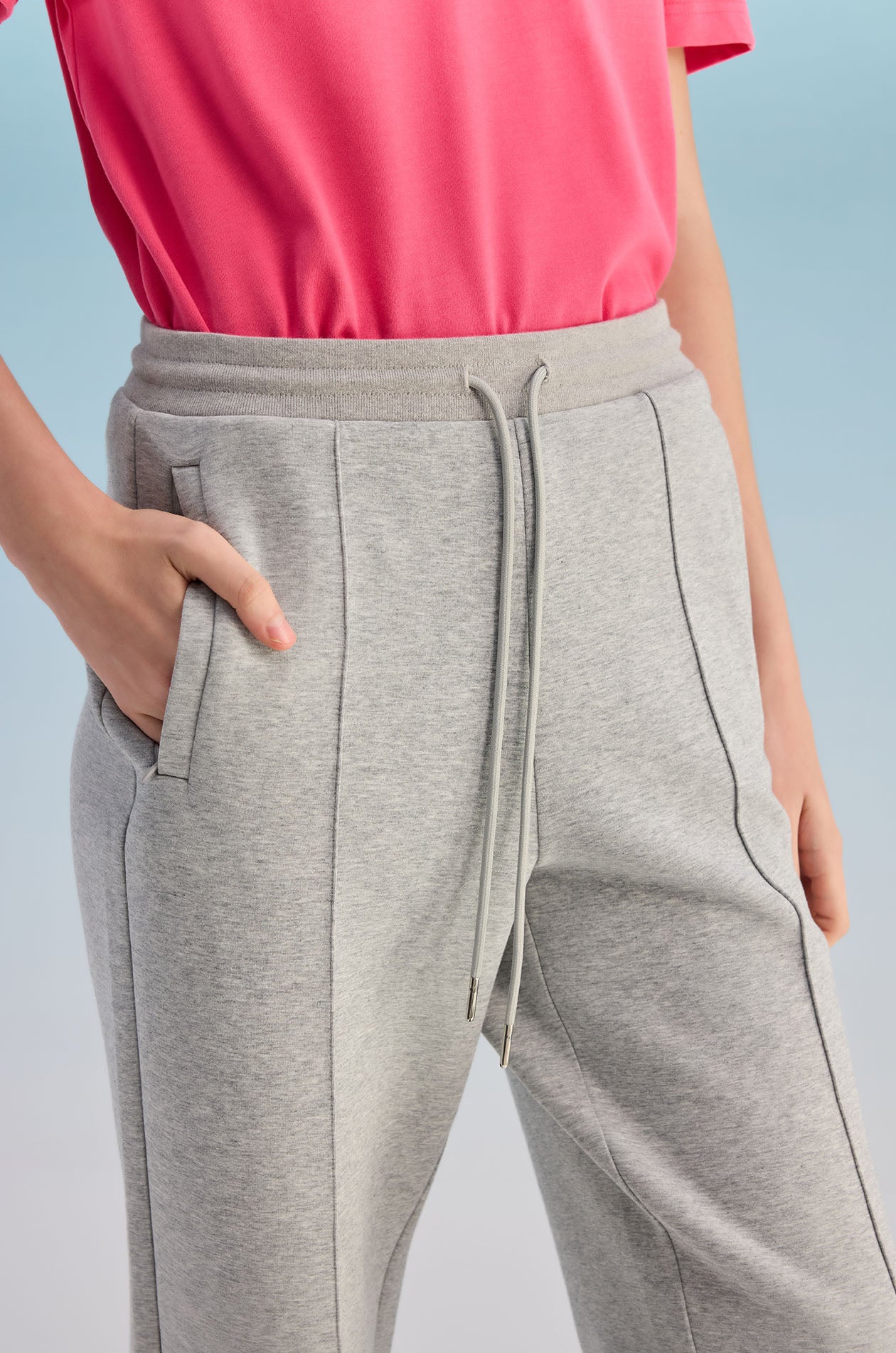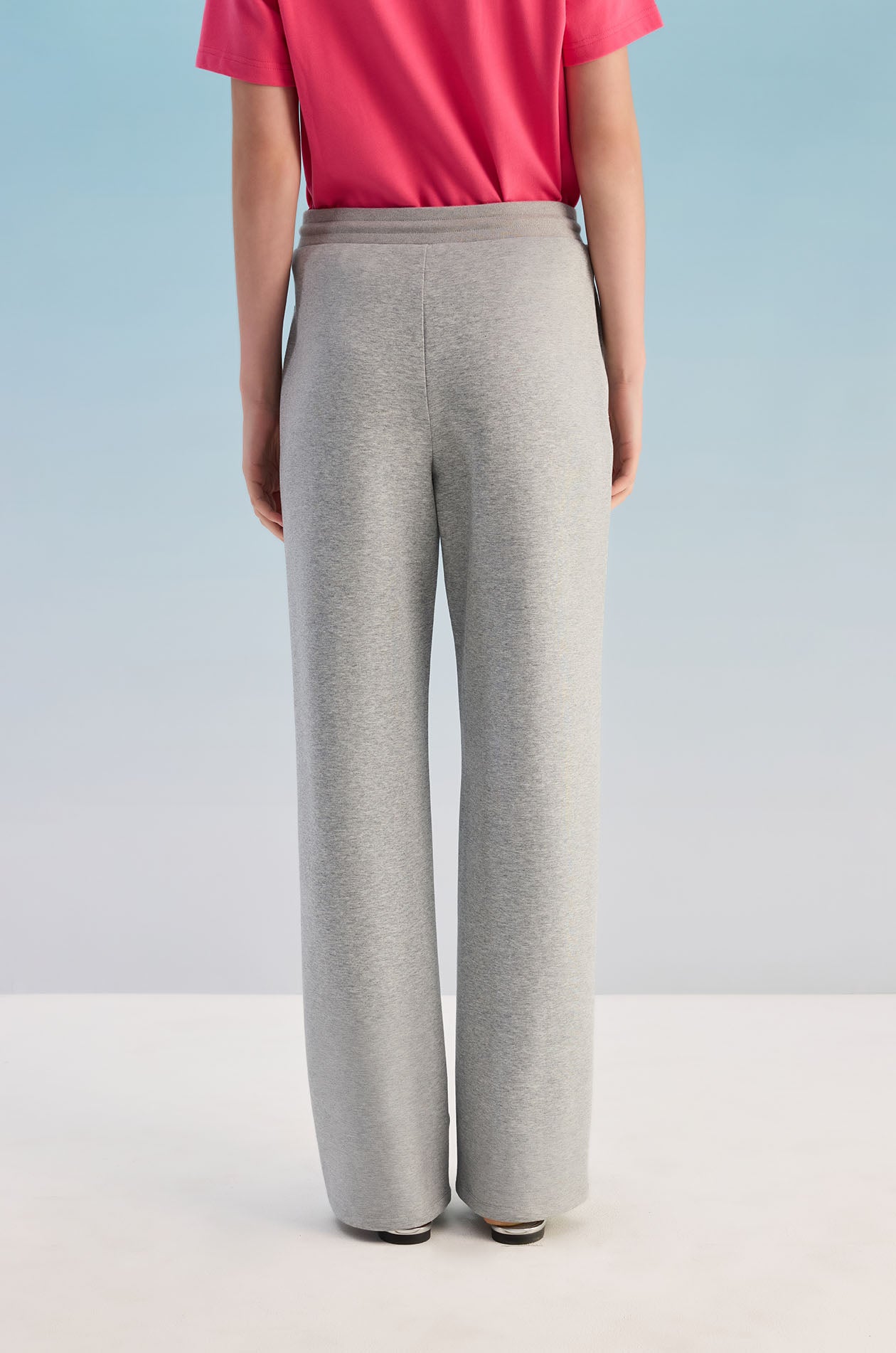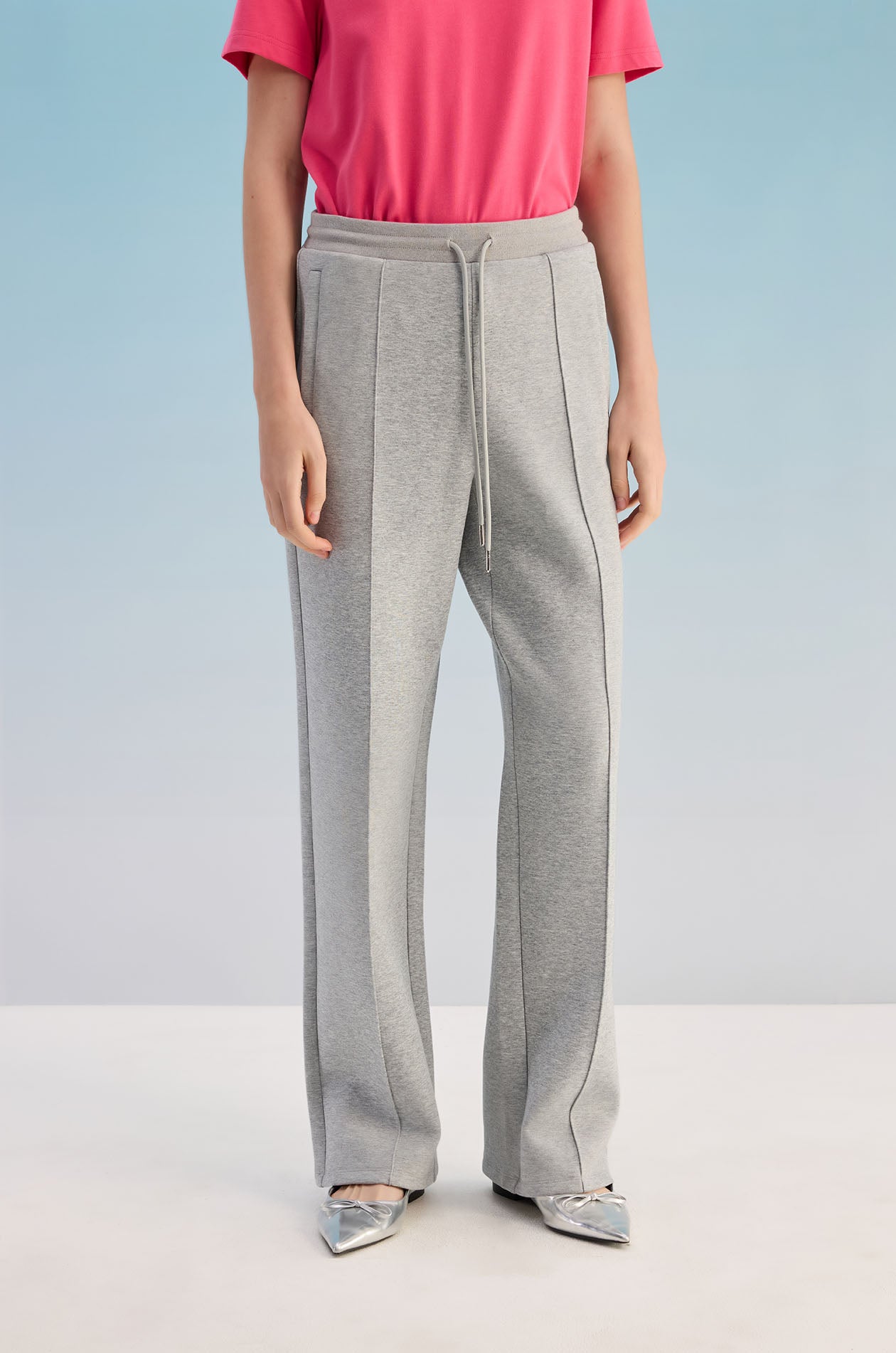 Mid-rise sweatpants in double jersey. Straight legs with front creases and side zip pockets. Elastic drawstring waistband. Available in grey and navy.