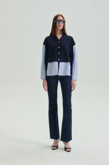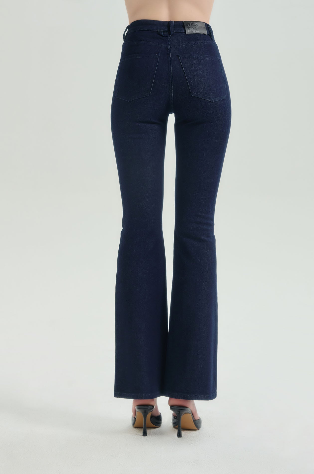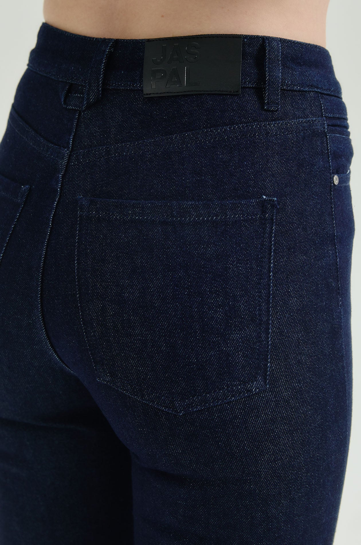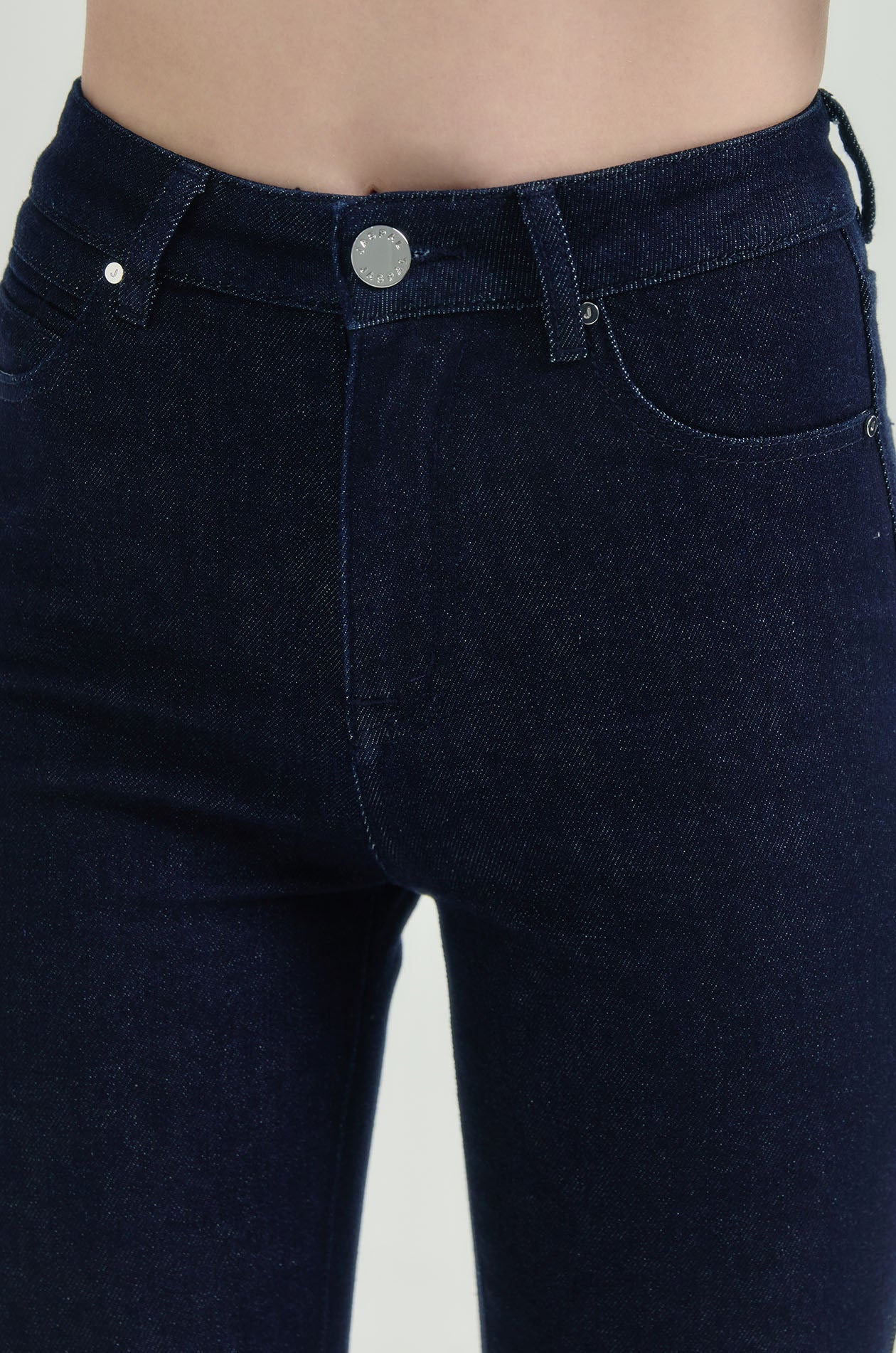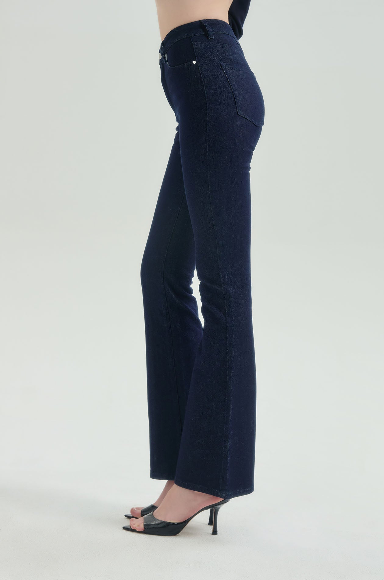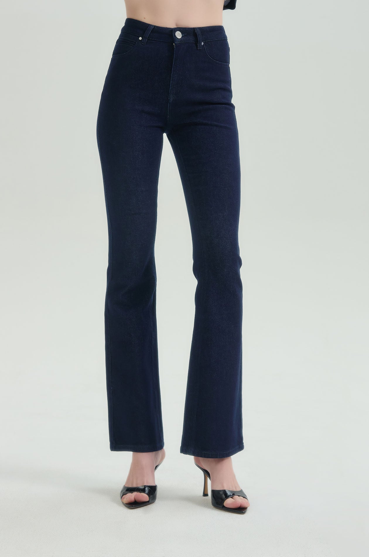 Mid-rise cropped jeans in denim. Slim fit with flared legs and five-pocket styling. Front button and zip closure. Available in indigo.