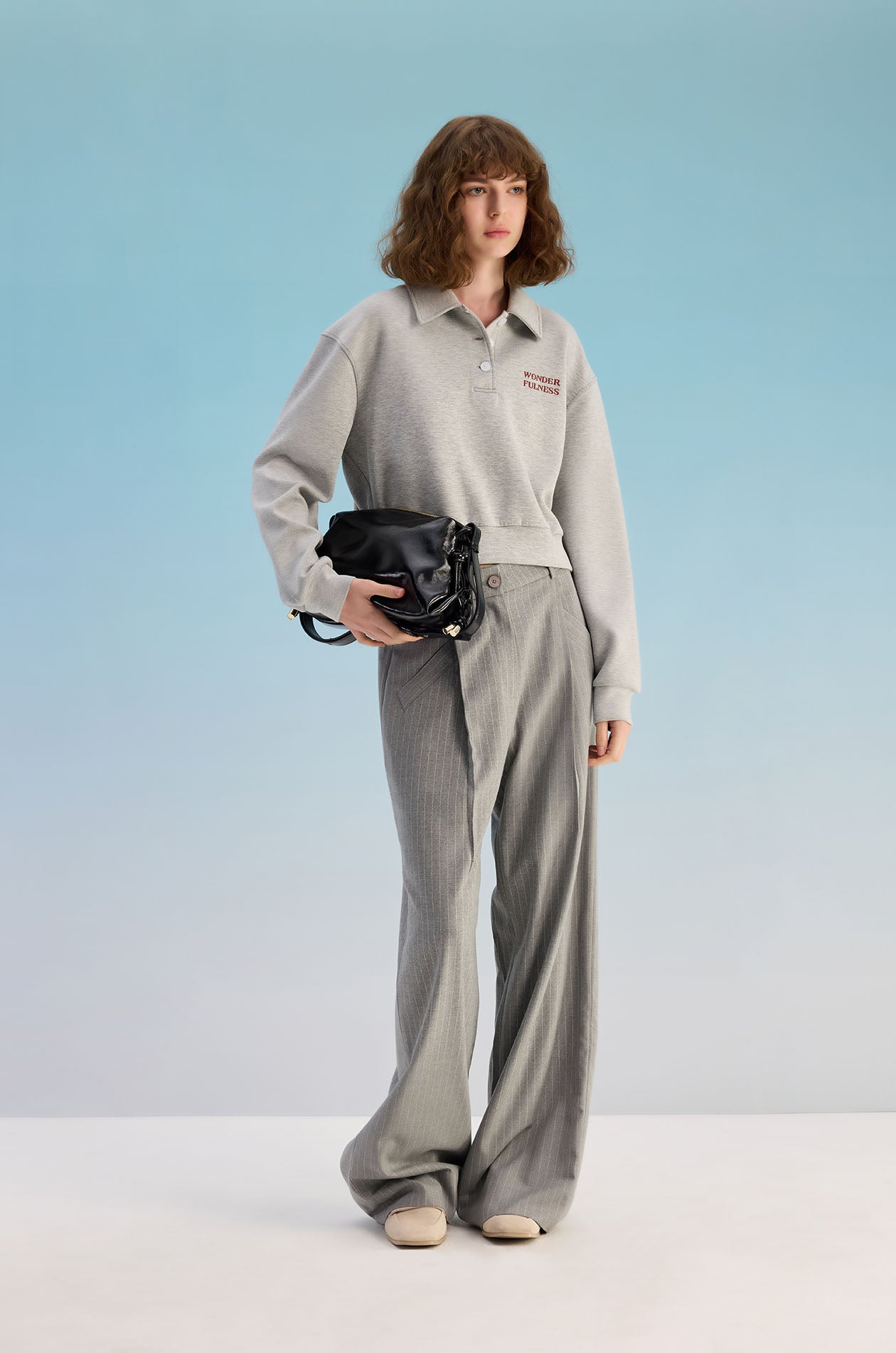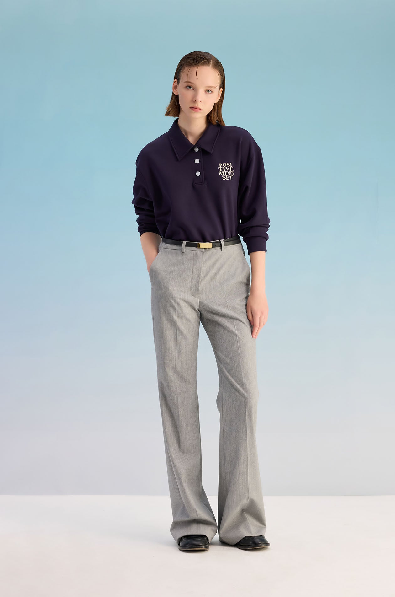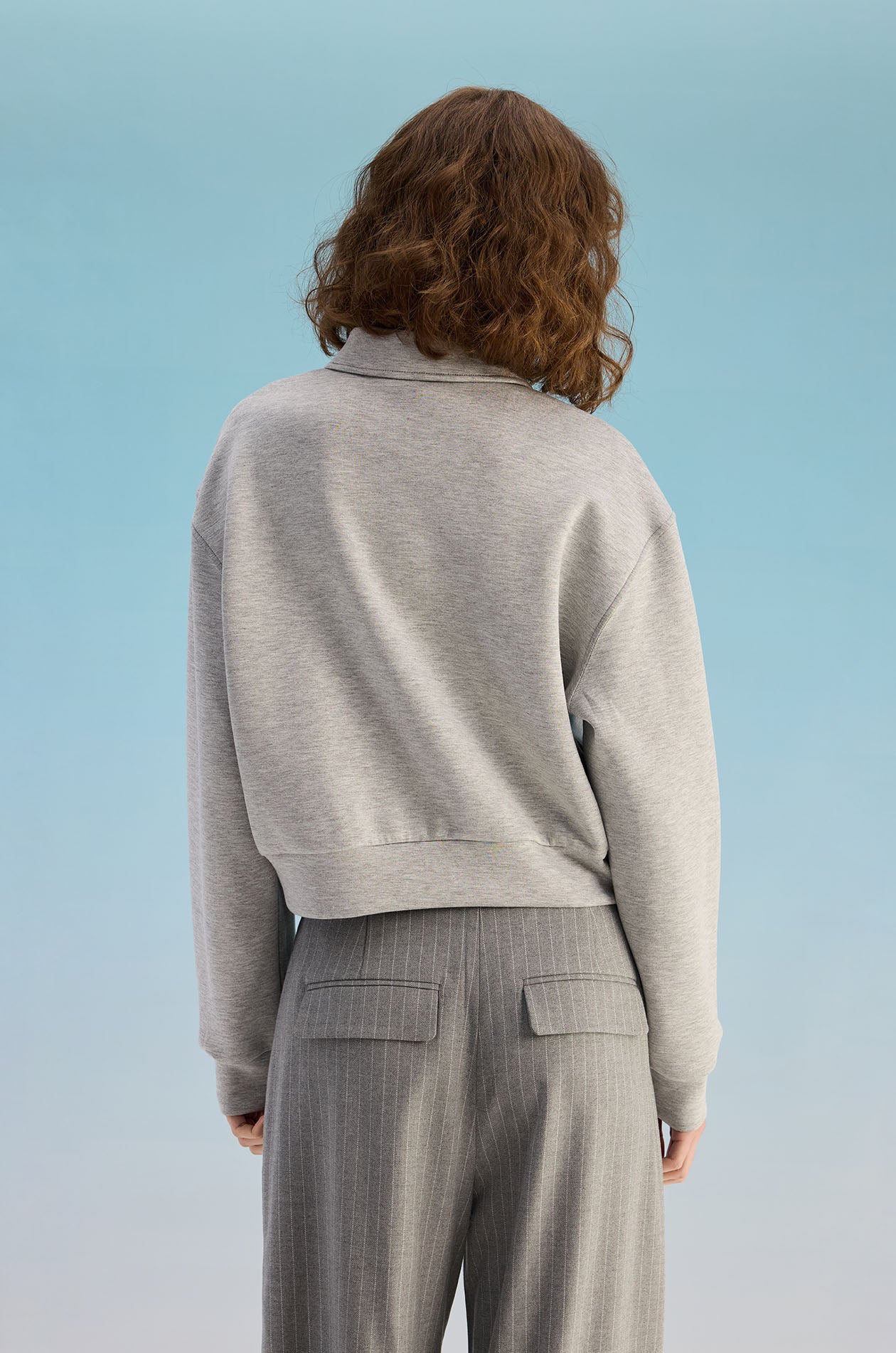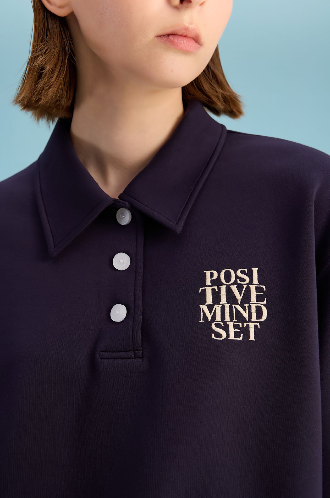 Pullover sweatshirt in double jersey. Boxy silhouette with polo collar and embroidery at the chest. Half button closure. Available in navy and grey.