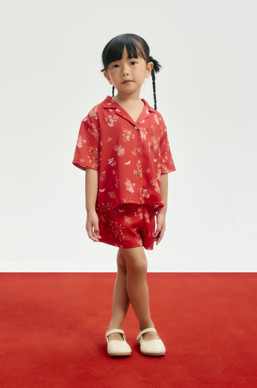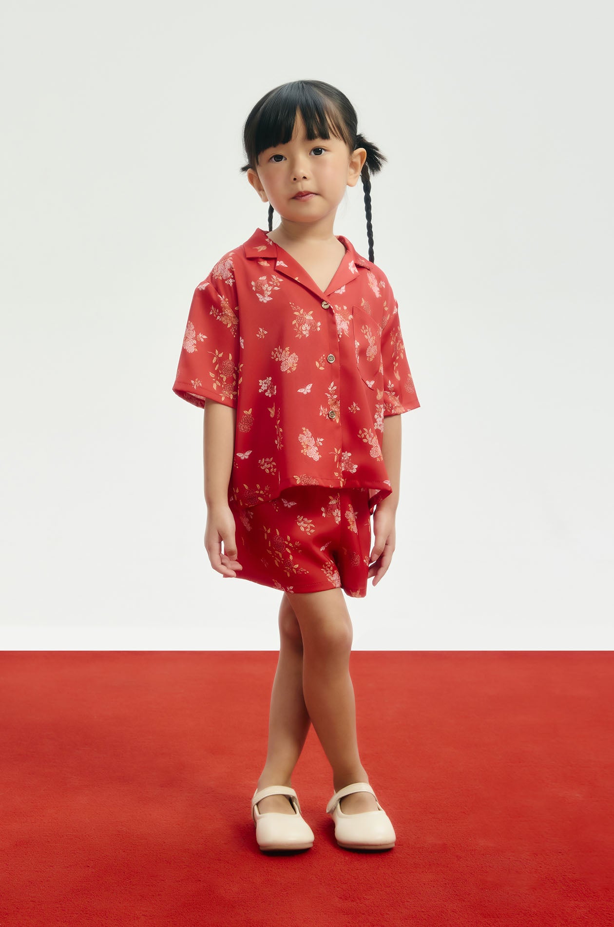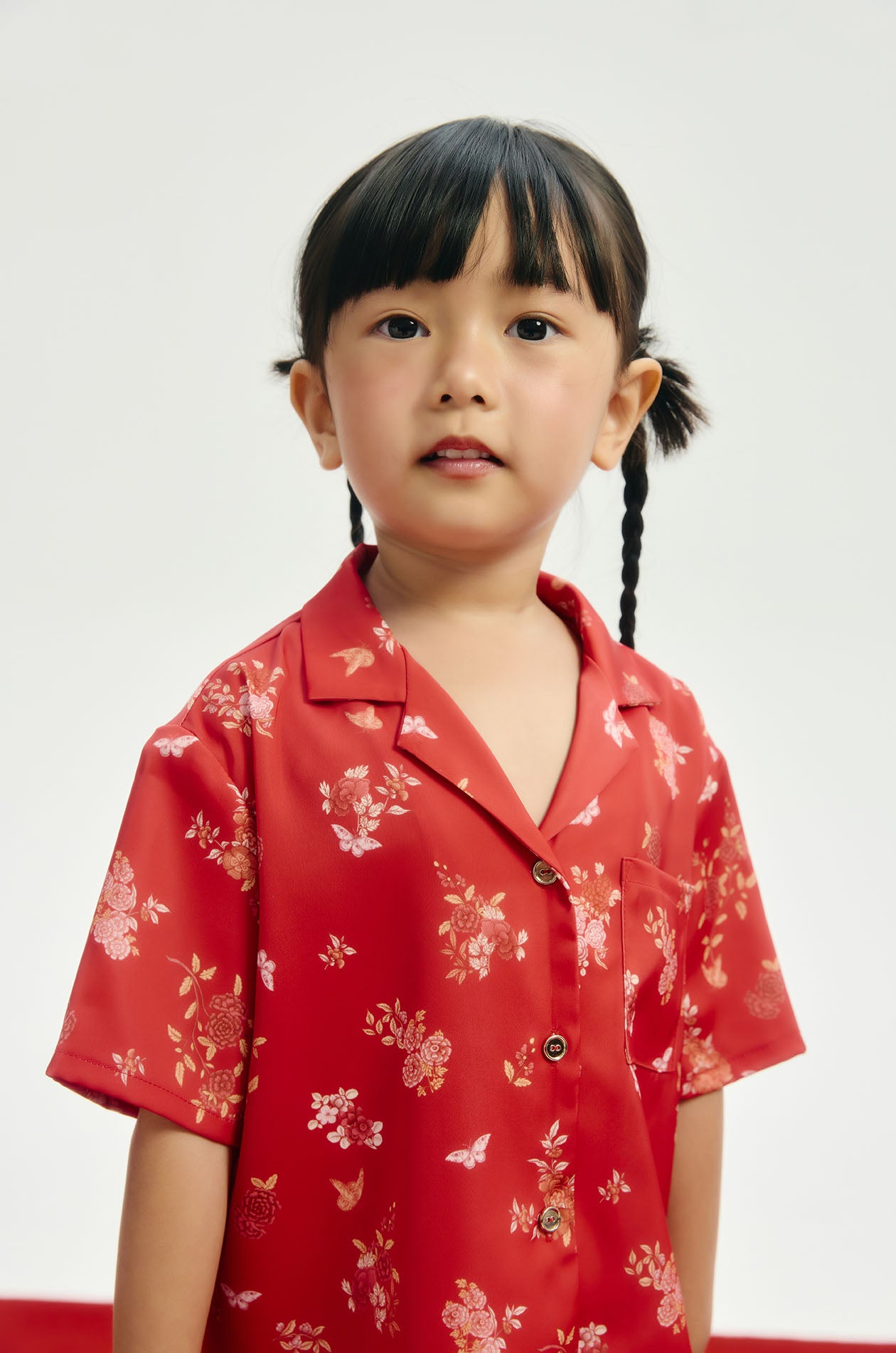 Jaspal x nussdaydream for Lunar New Year | Short-sleeved shirt in satin. Regular fit with Chinese-style floral print. Camp collar and chest pocket. Front button closure. Available in Chinese Red.