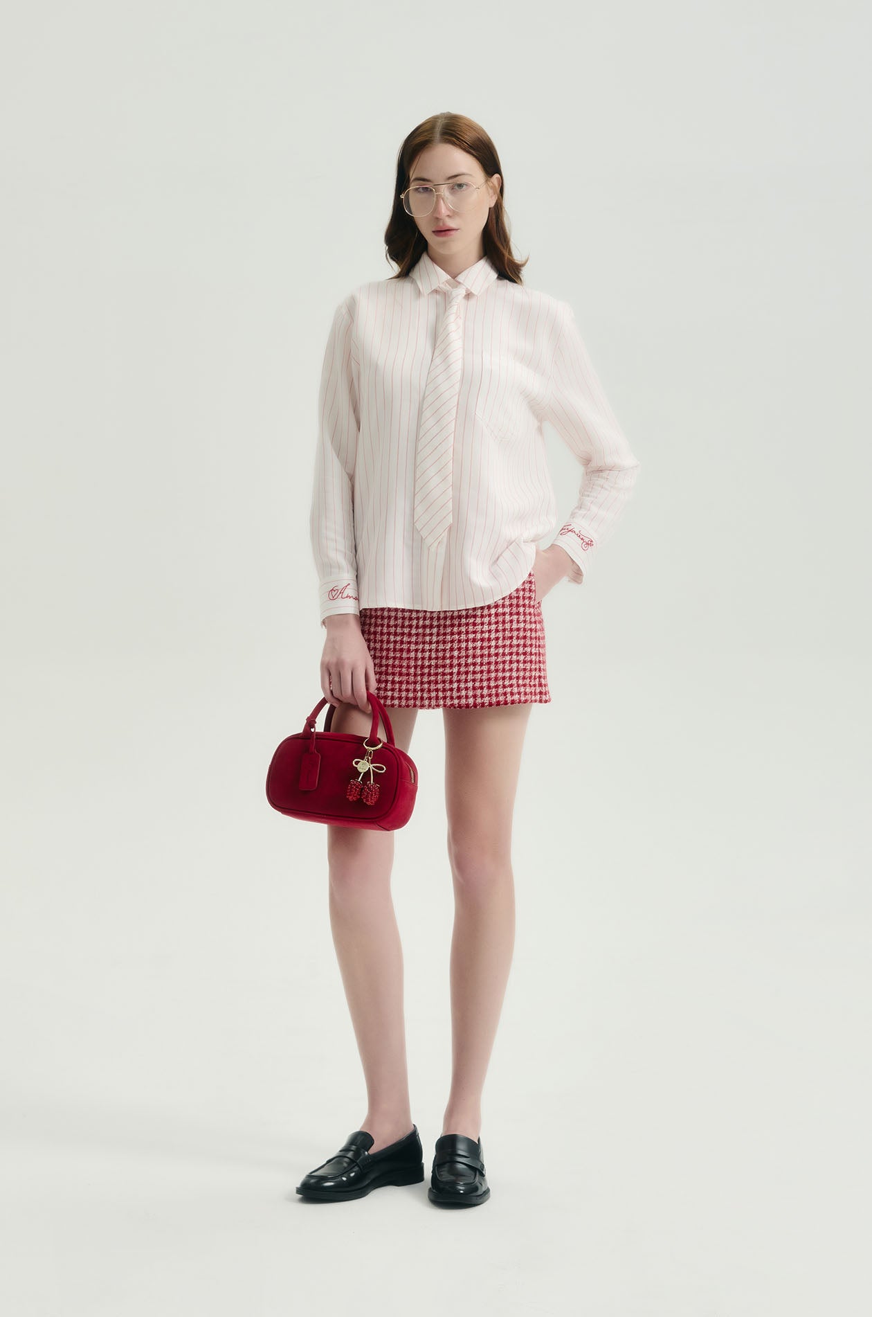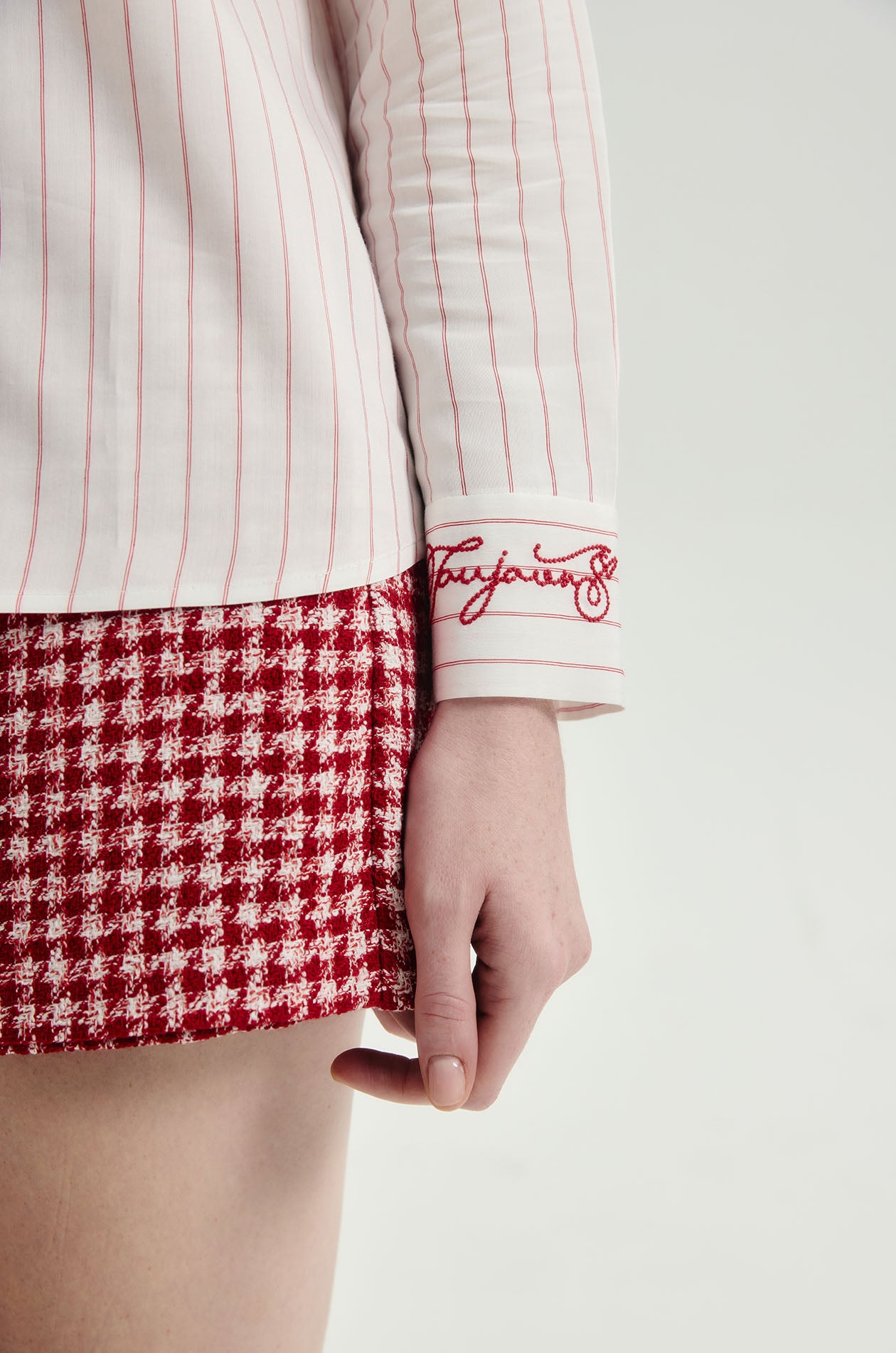 Jaspal The Edit x Proud & Tan | Long-sleeved shirt in woven fabric with a stripe pattern. Regular fit with a classic collar, chest pocket, embroidered cuffs, and a removable matching necktie. Front button closure. Available in off-white.