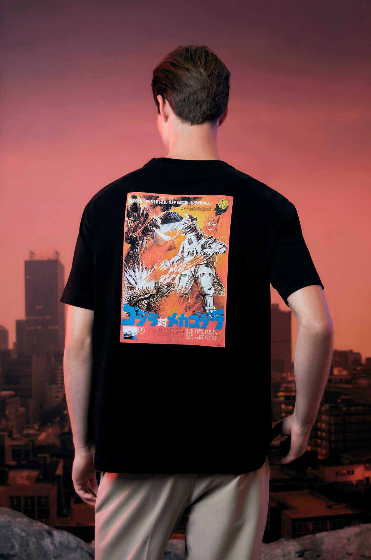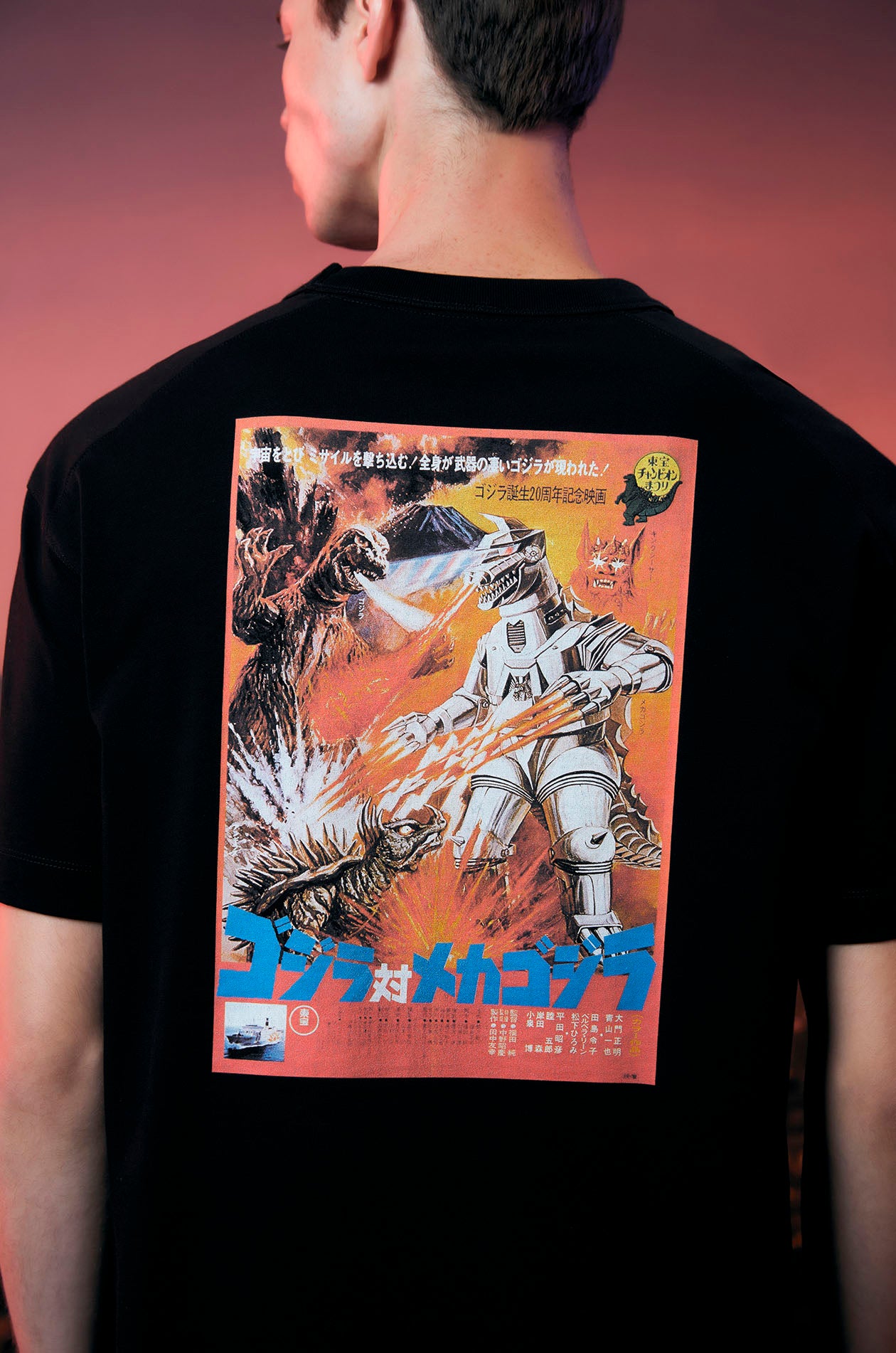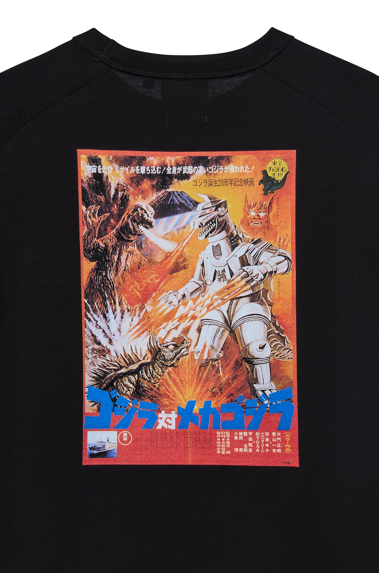Step into Kaiju chaos with this short-sleeved T-shirt, crafted from cotton jersey. Features a bold Godzilla vs. Mechagodzilla (1974) poster print on the back. Designed with a relaxed fit and a clean round neckline. It’s the perfect fusion of vintage monster movie vibes and modern streetwear edge. Available in black.