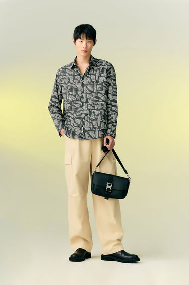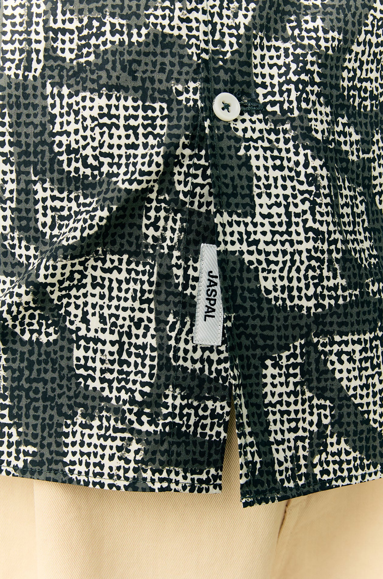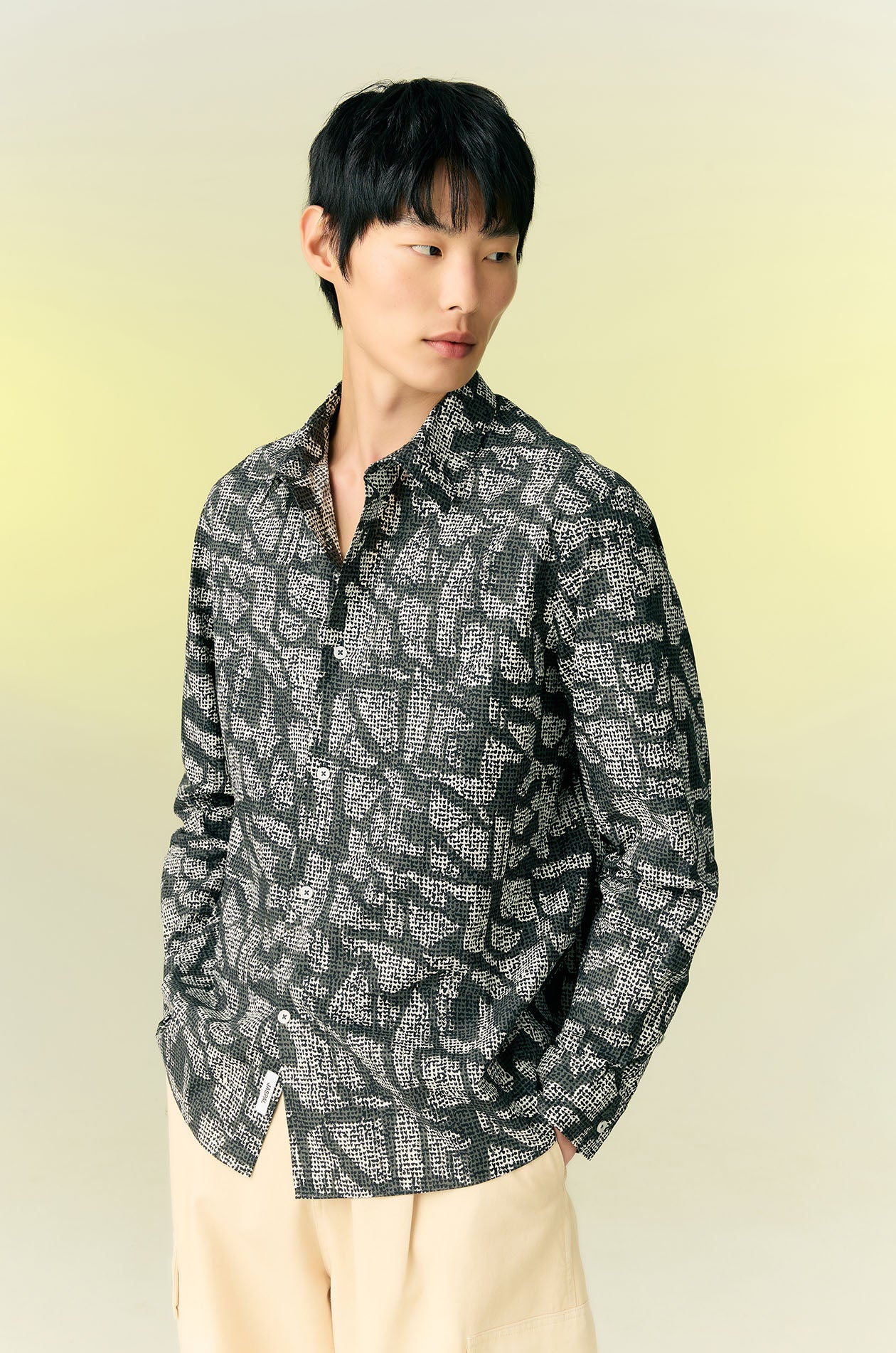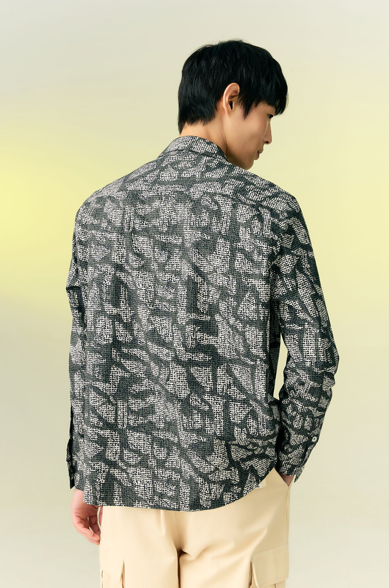 Long-sleeved shirt in cotton with abstract print. Relax fit with classic collar and buttoned cuffs. Front button closure. Available in black.