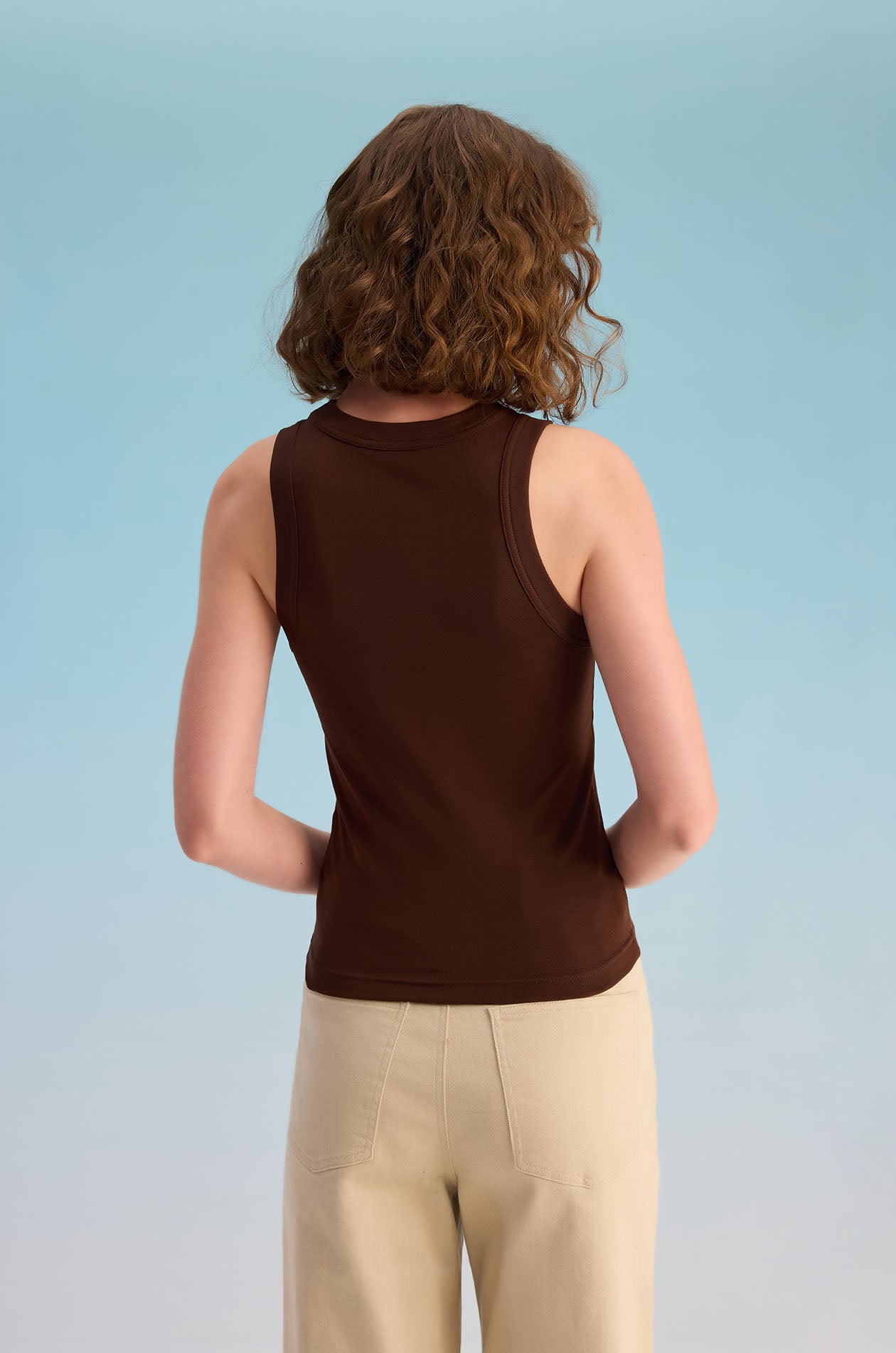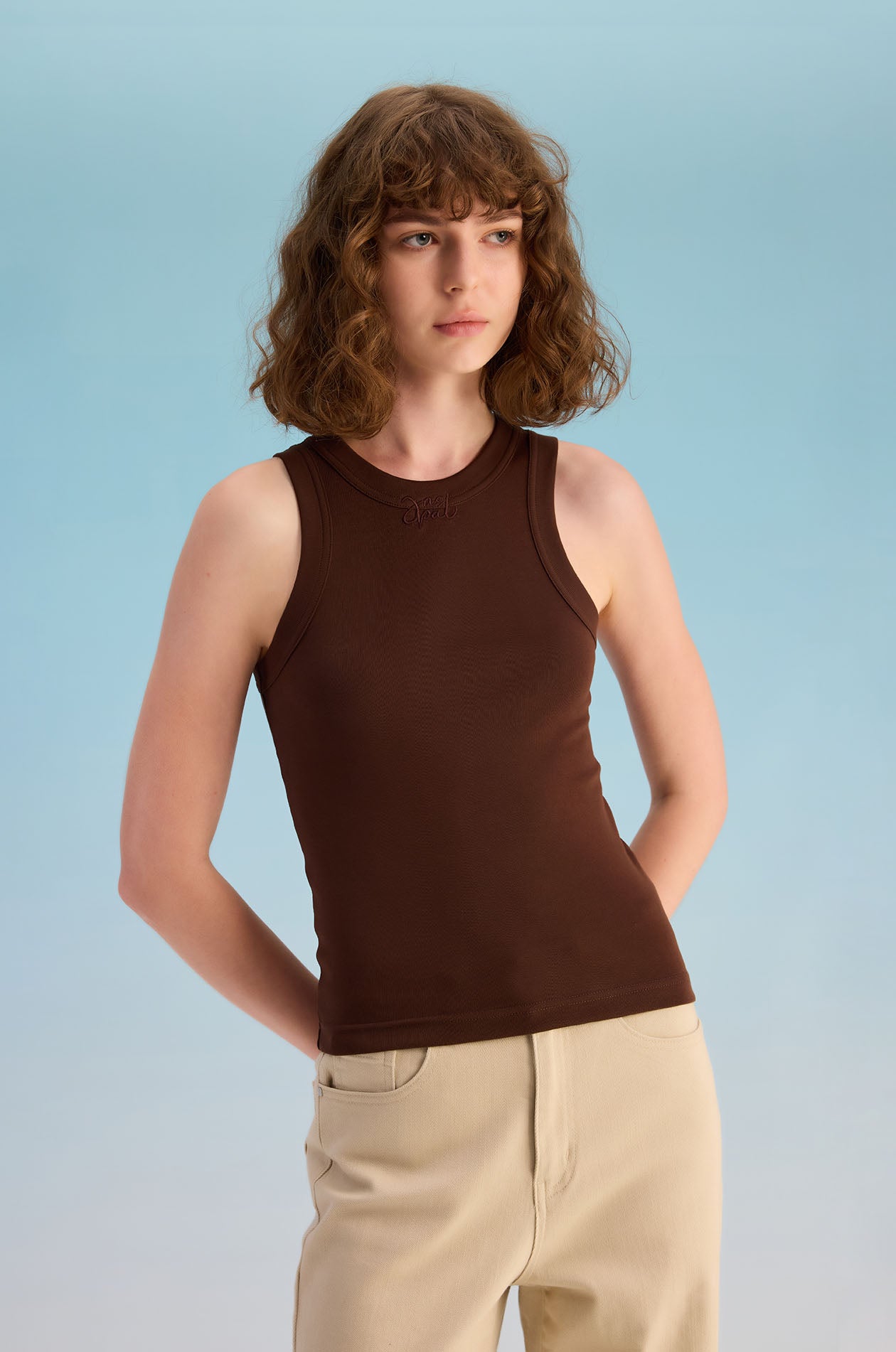 Crew neck tank top in cotton-blend jersey. Slim fit with Jaspal logo embroidery at the neckline. Available in cornflower blue and dark brown.