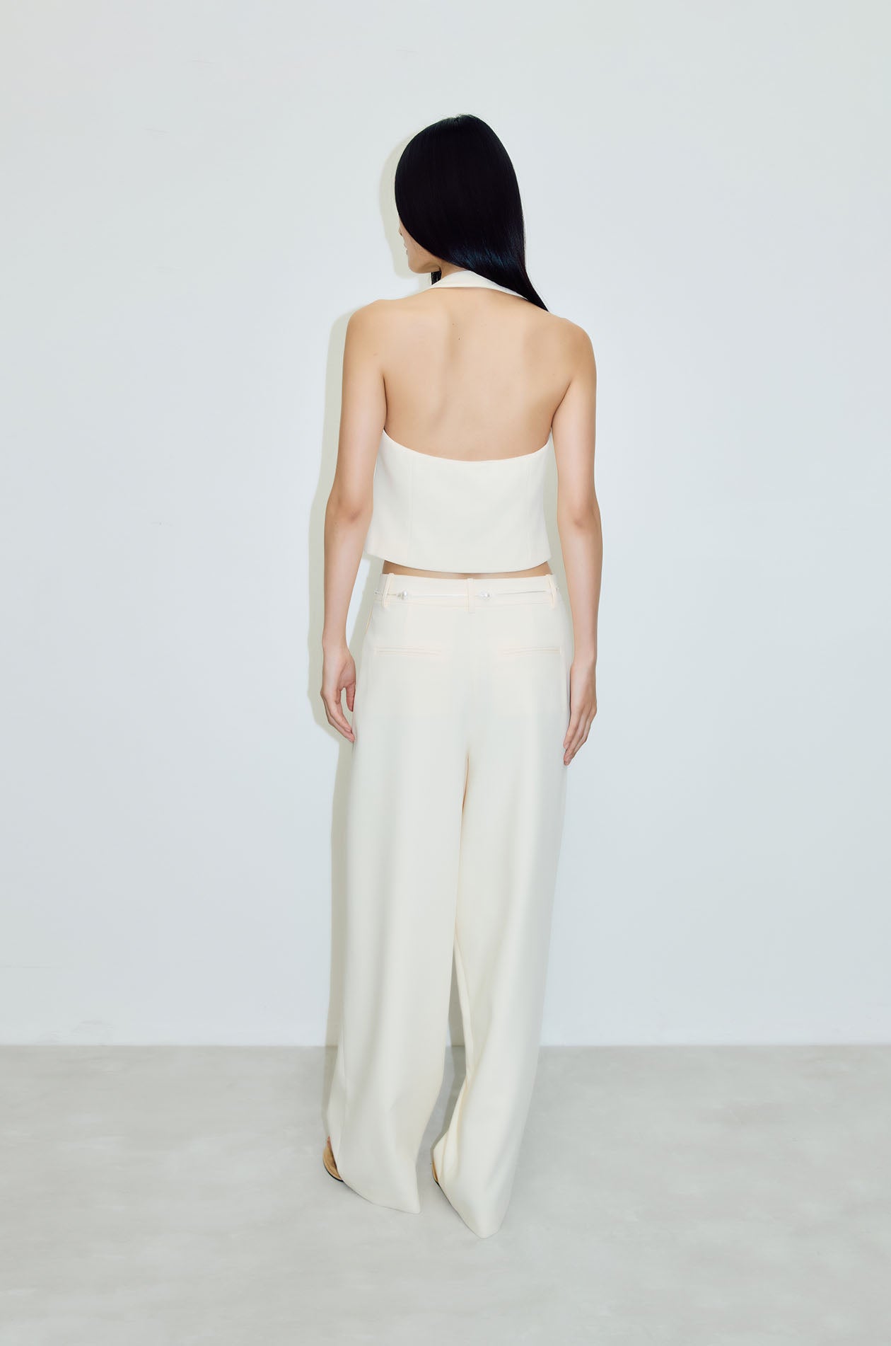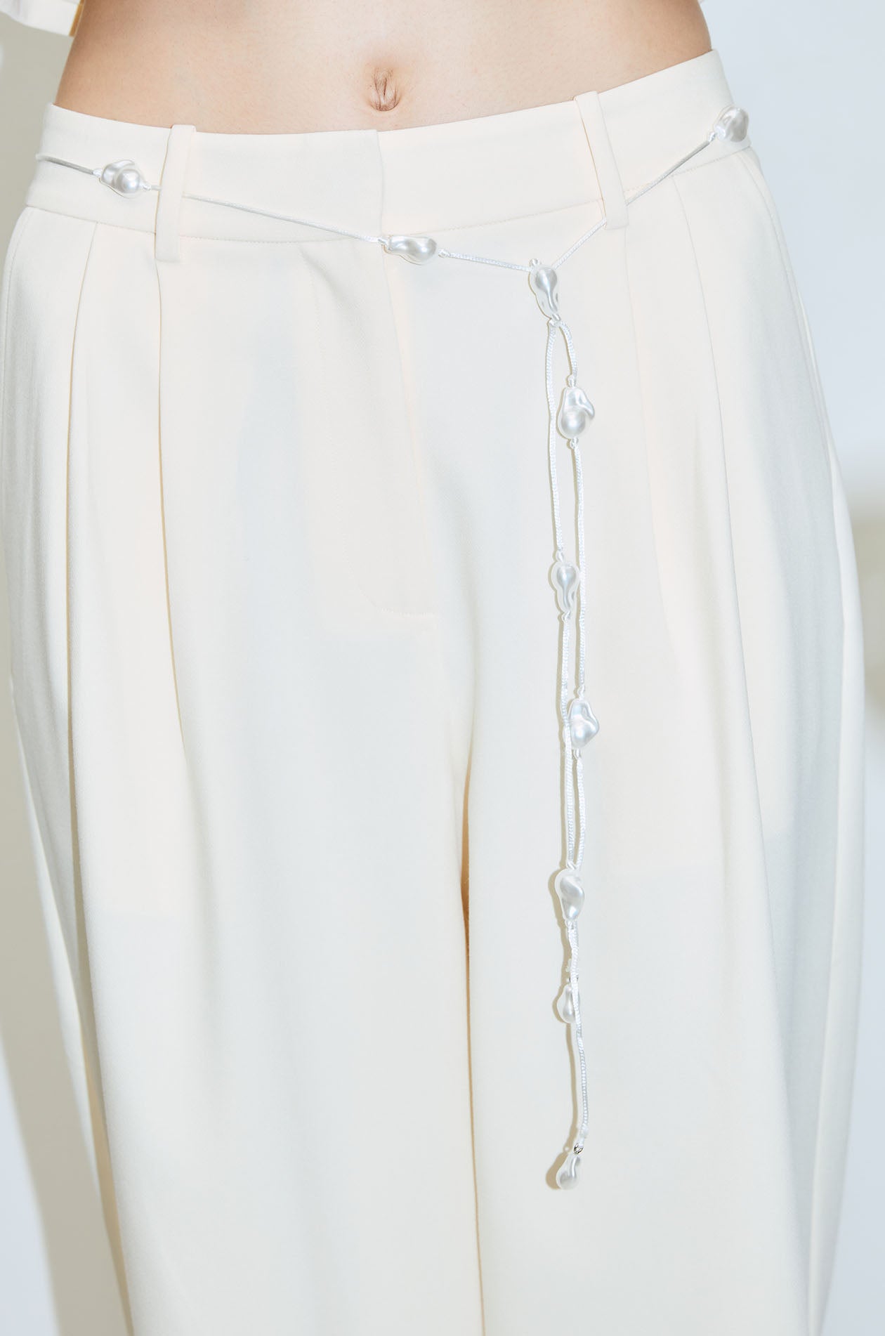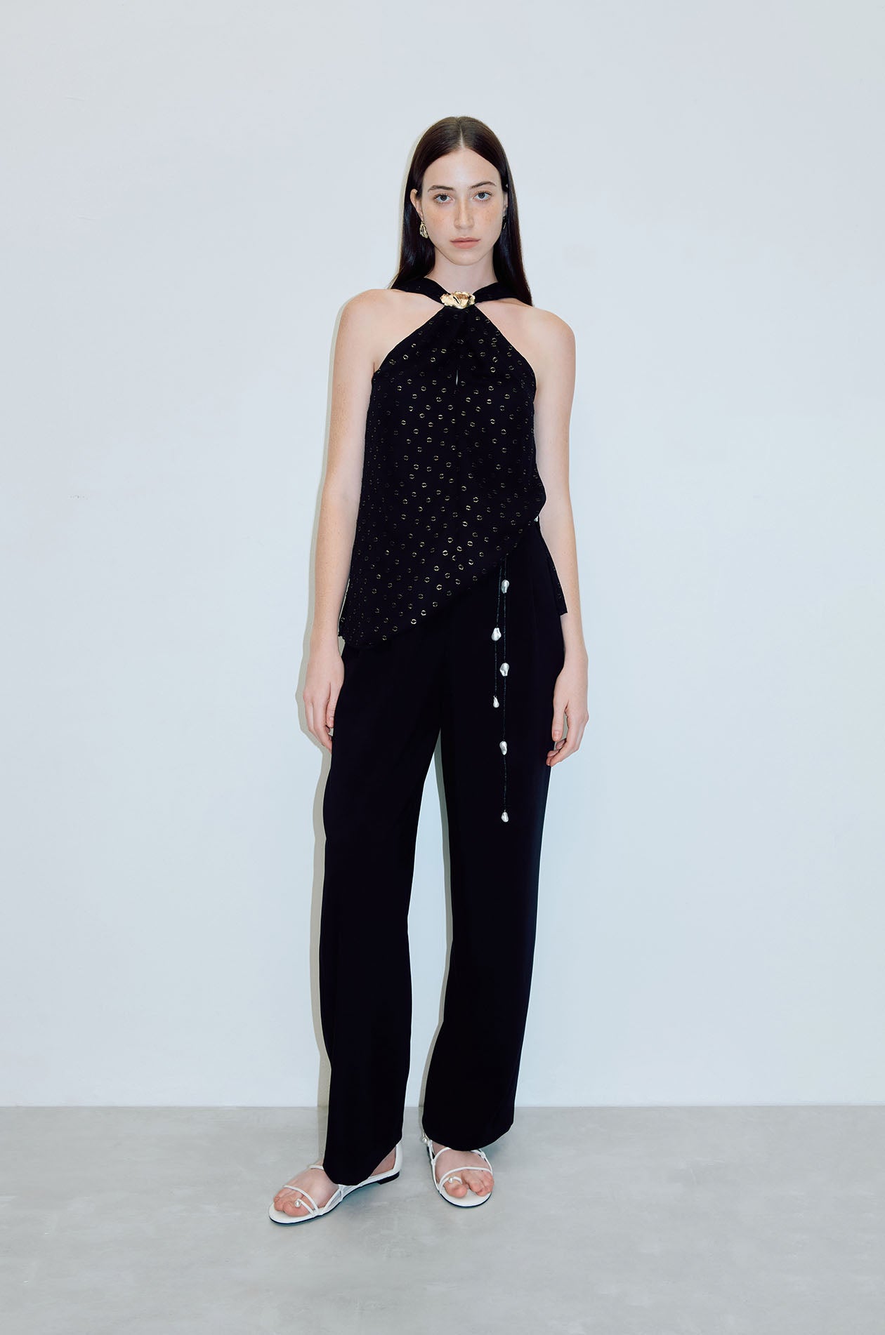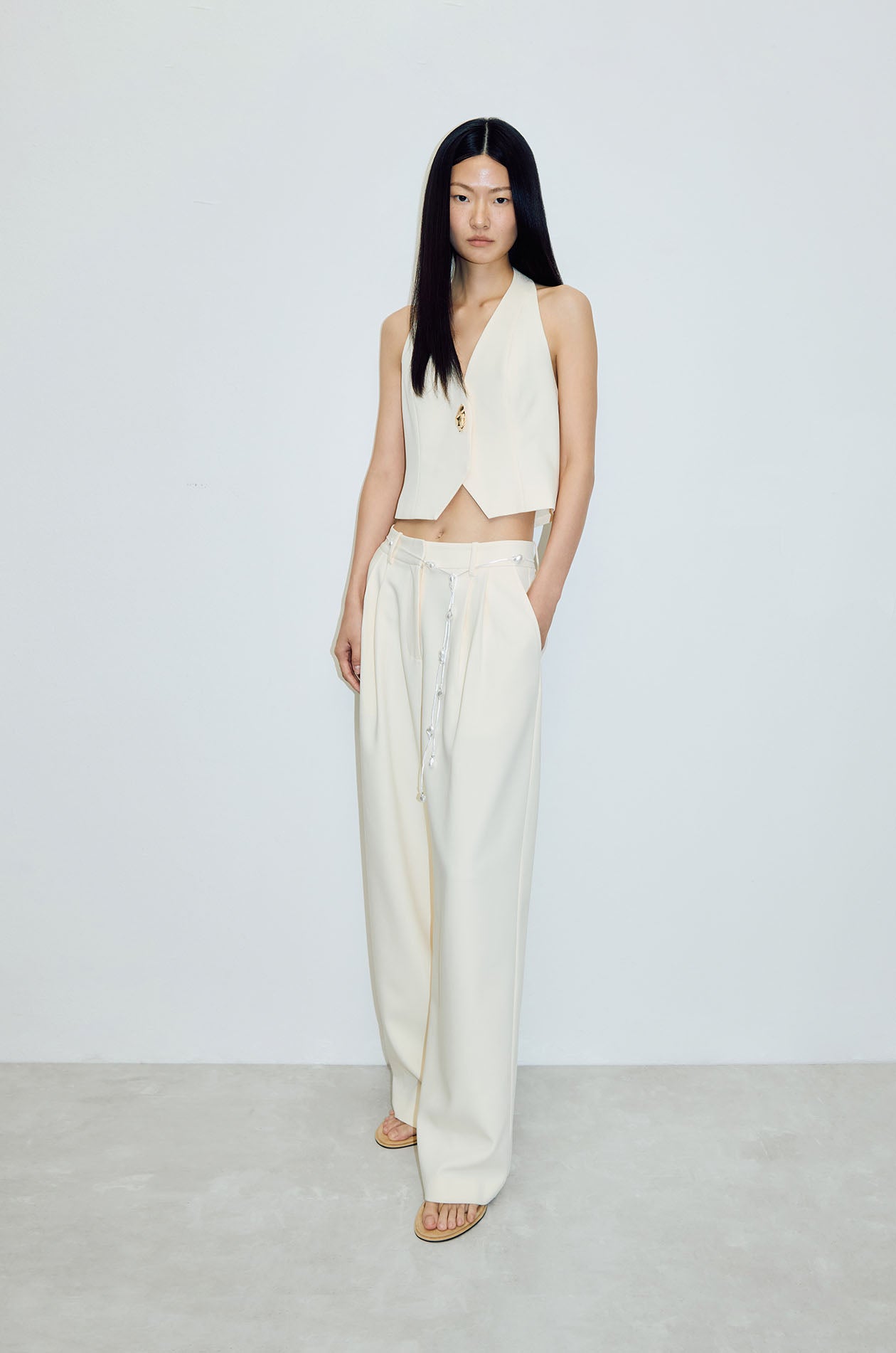 Jaspal Edit x Pacharee | Mid-rise pants crafted from terry rayon. Designed with loose straight legs, detailed with gentle pleats for added fluidity. Finished with a rope belt accented by subtle gold-tone hardware. Available in black and light yellow.