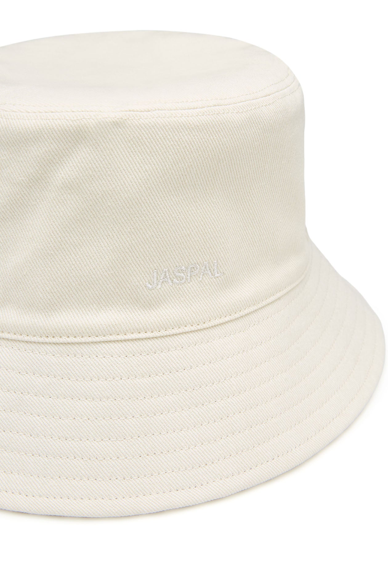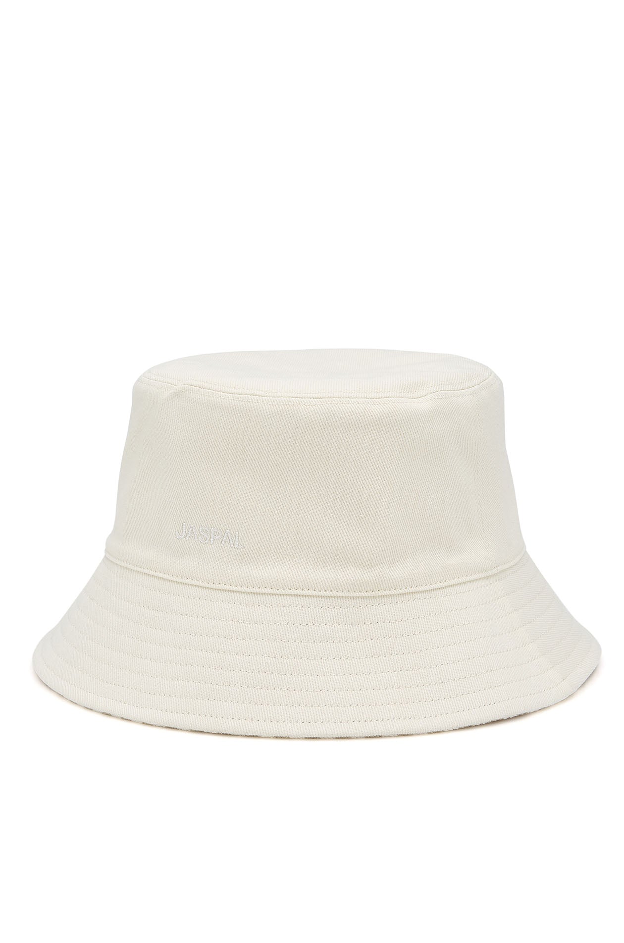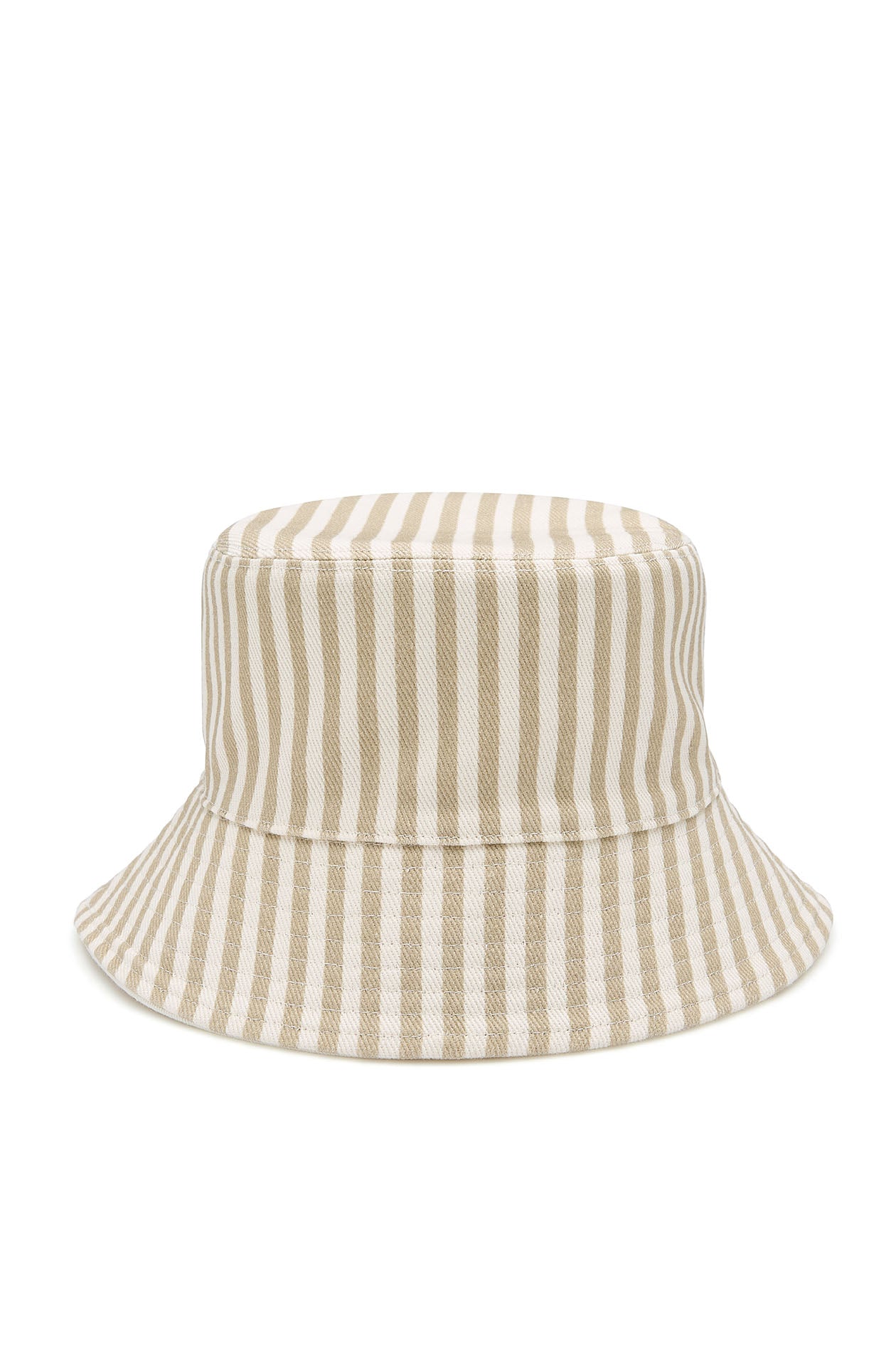 Reversible bucket hat in cotton, featuring a solid color with an embroidered logo on one side and two-tone stripes on the other. Available in beige.