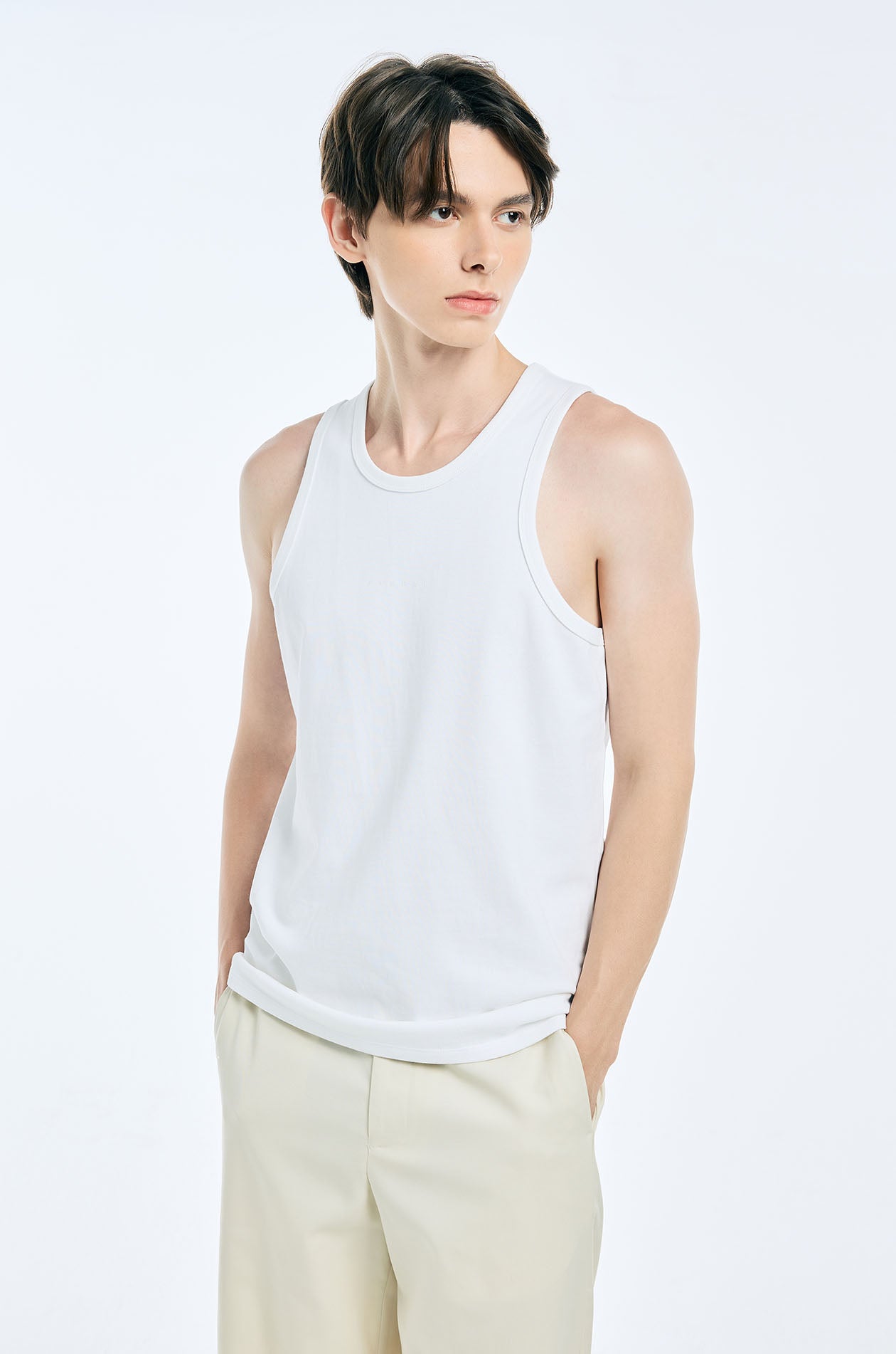 Round neck tank top in jersey. Regular fit with basic design. Available in black and white.