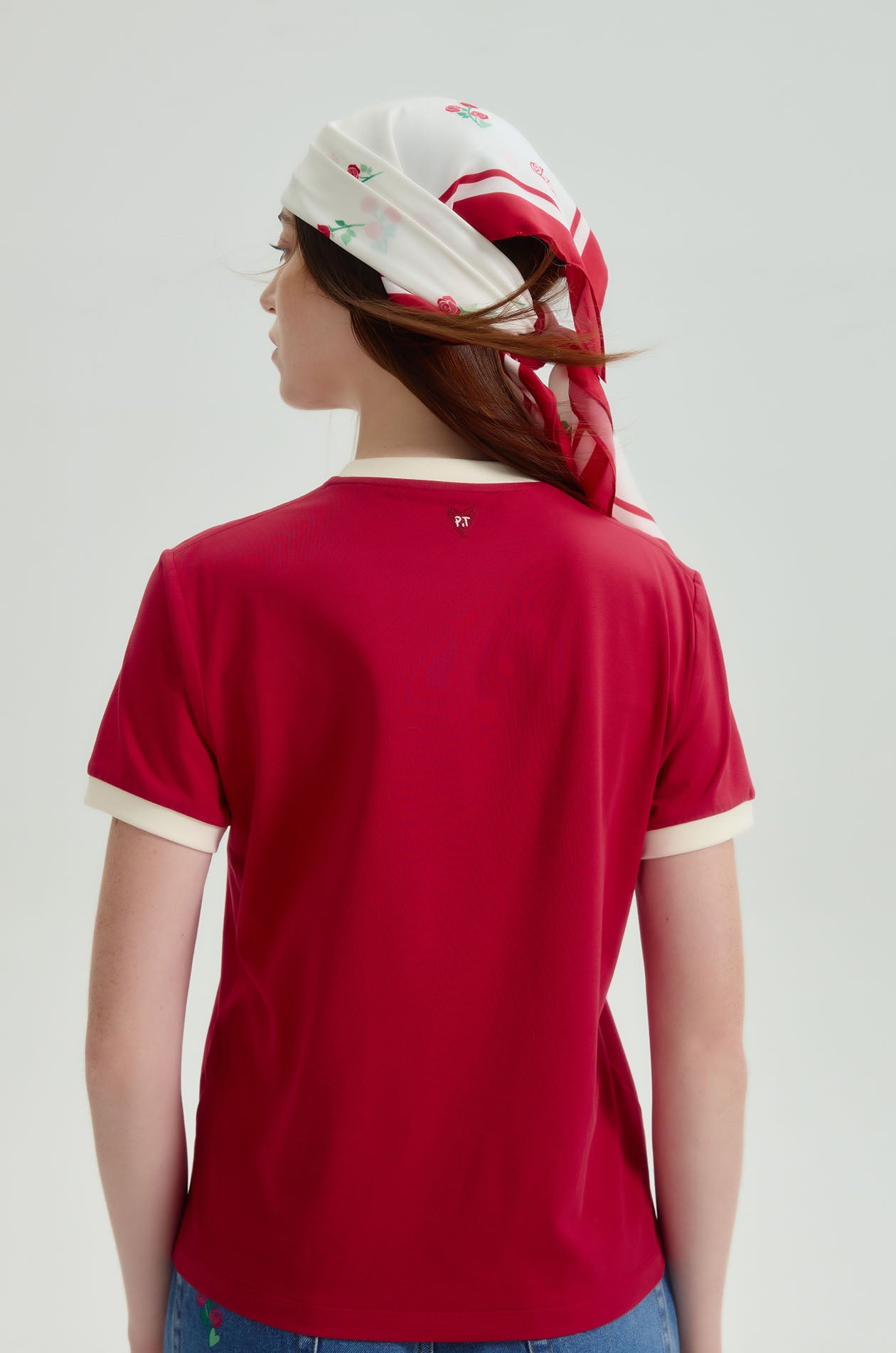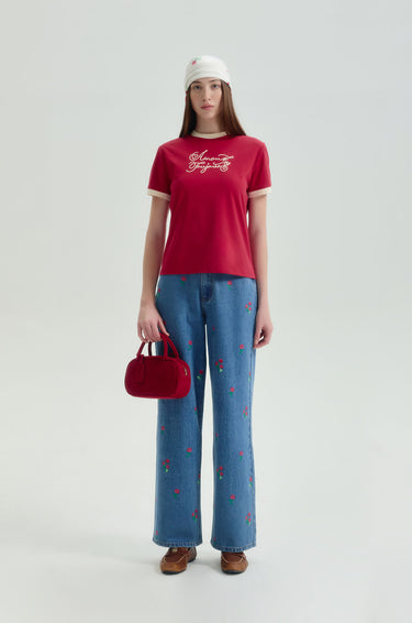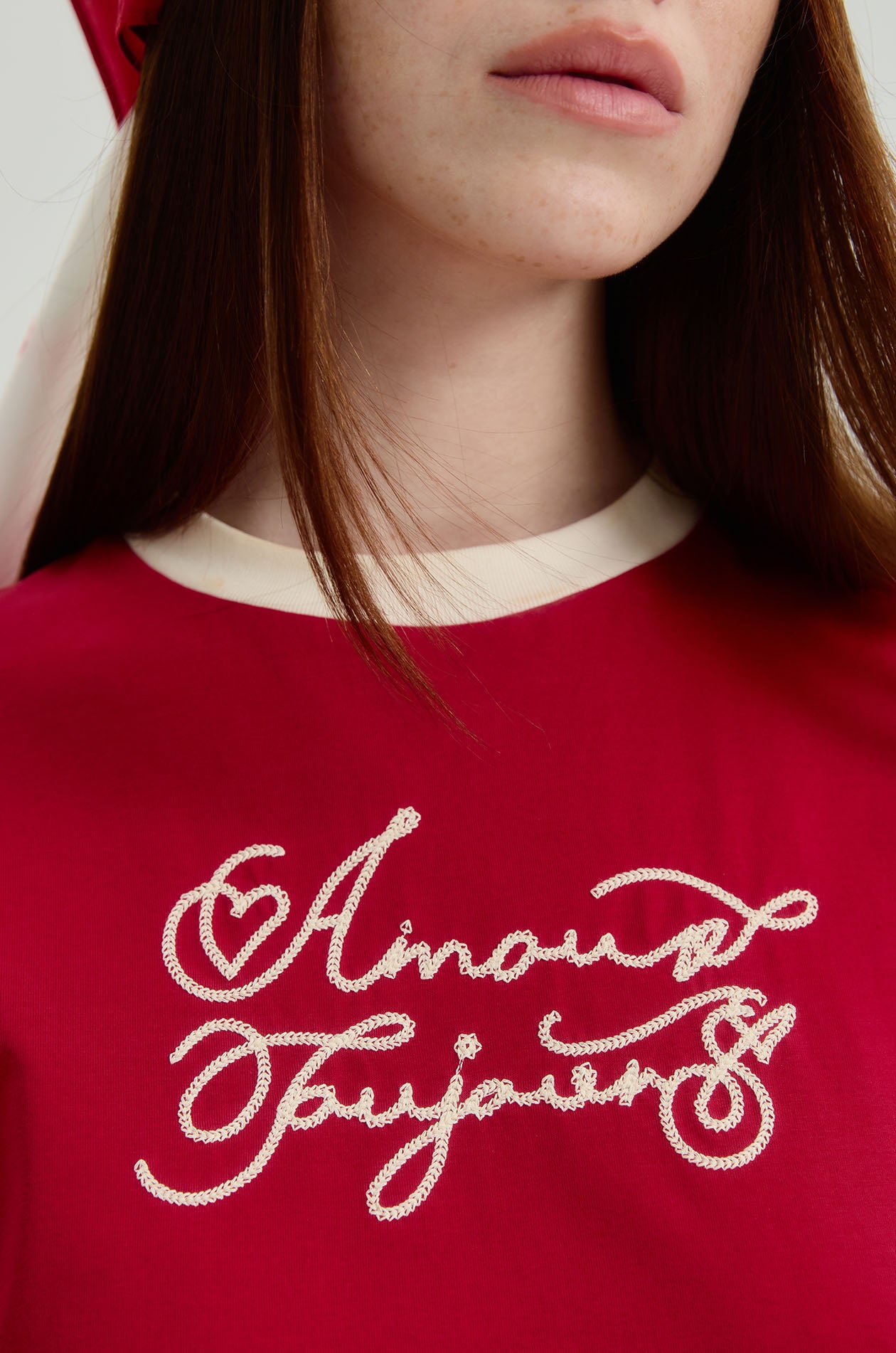 Jaspal The Edit x Proud & Tan | Short-sleeved ringer tee in cotton-blend jersey. Regular fit with a round neckline, 'Amour Toujours' embroidery at the front, and a tapered waistline. Available in red.