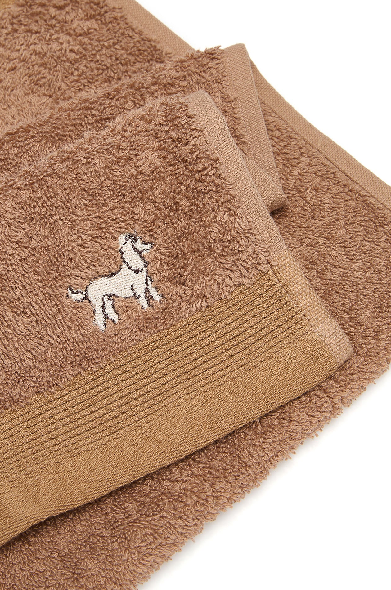 Hand towel in playful colors, detailed with a charming animal appliqué at the corner for a cheerful accent. Soft and absorbent, it’s designed for everyday use while adding a lighthearted touch to your bathroom. Available in brown, purple, and white.